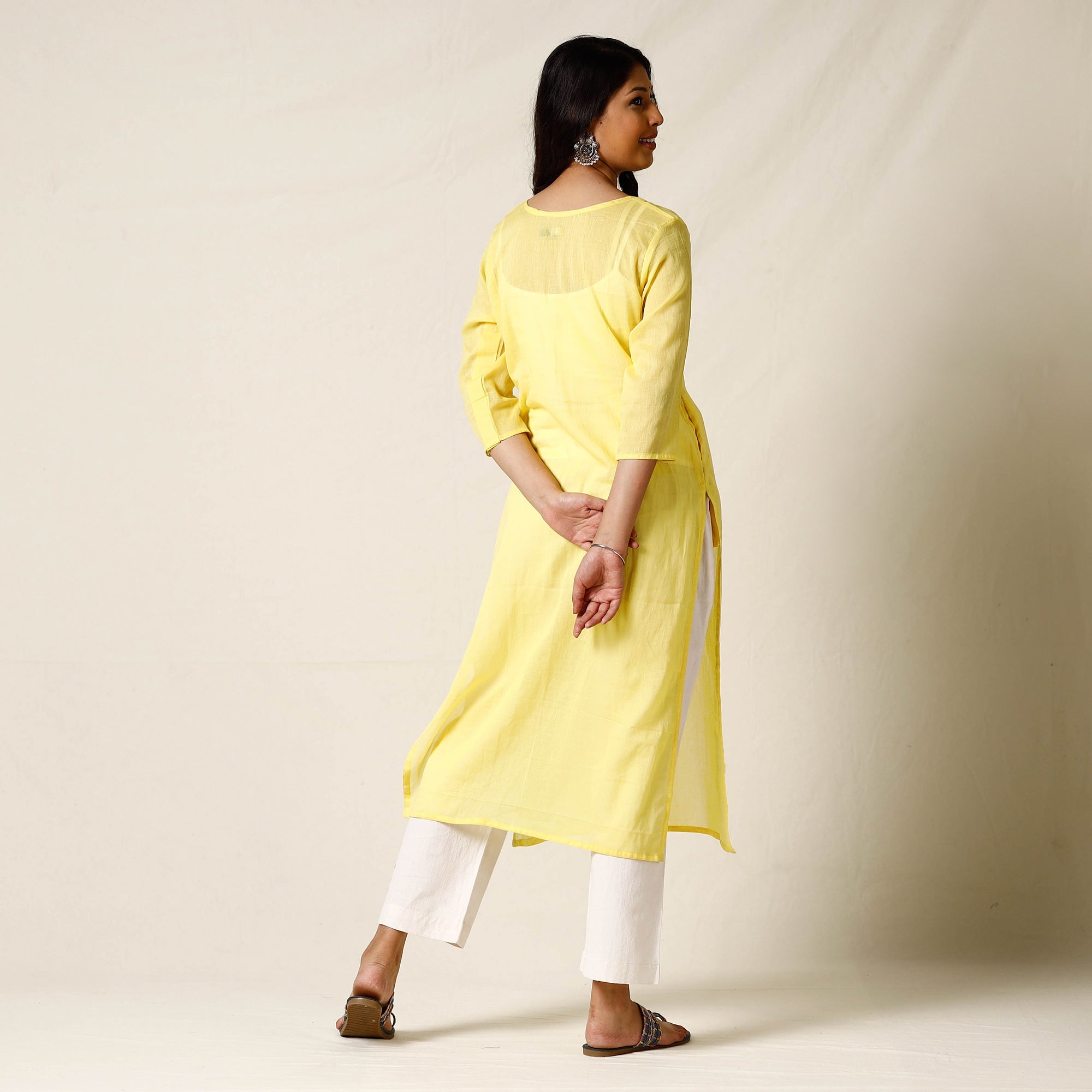 This plain dyed mulmalai cotton long kurta is uniquely designed to make you look and feel beautiful. It features a one-side pocket and is made from comfortable mul cotton fabric, ensuring ease and comfort throughout the day. Each piece is meticulously handcrafted by skilled artisans, showcasing their artistry and attention to detail. Mulmalai celebrates the beauty of simplicity, offering a collection that embodies grace, comfort, and effortless style. Embrace the softness and breathability of mulmul fabric while indulging in the sheer joy of wearing handmade creations. Discover the allure of Mulmalai and adorn yourself with the magic of artisanal craftsmanship.