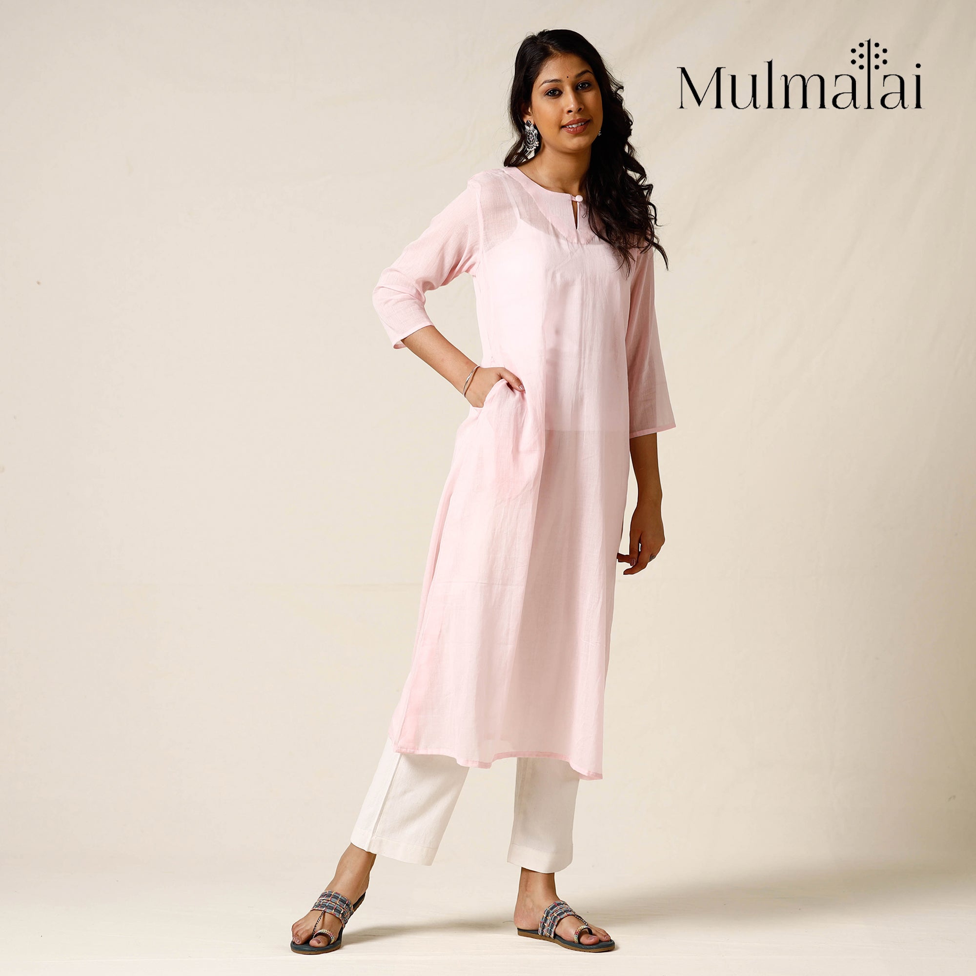 This plain dyed mulmalai cotton long kurta is uniquely designed to make you look and feel beautiful. It features a one-side pocket and is made from comfortable mul cotton fabric, ensuring ease and comfort throughout the day. Each piece is meticulously handcrafted by skilled artisans, showcasing their artistry and attention to detail. Mulmalai celebrates the beauty of simplicity, offering a collection that embodies grace, comfort, and effortless style. Embrace the softness and breathability of mulmul fabric while indulging in the sheer joy of wearing handmade creations. Discover the allure of Mulmalai and adorn yourself with the magic of artisanal craftsmanship.