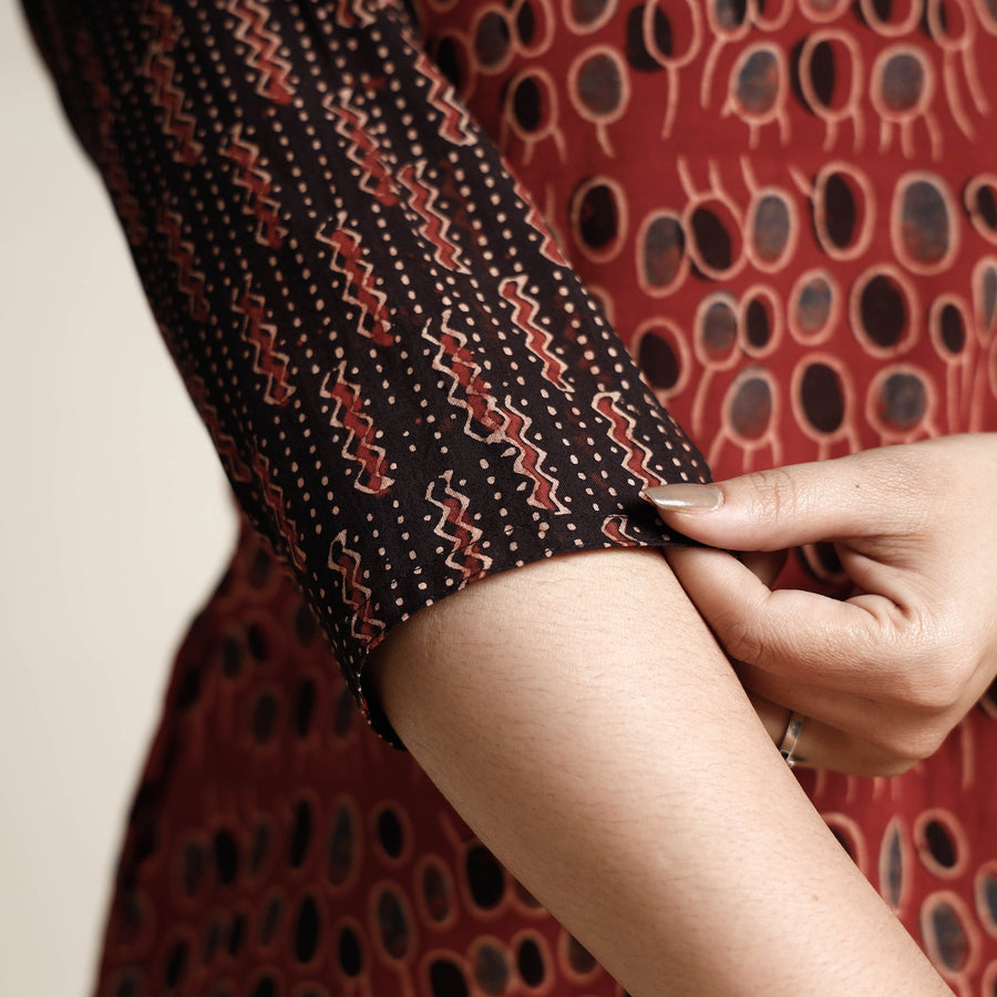 Look and feel beautiful in this uniquely designed ajrakh hand block printed cotton long kurta with palazzo & dupatta set made using natural dyes. This suit set contains a cotton kurta, palazzo, and cotton dupatta. The kurta has one side pocket, and the palazzo has two side pockets. This cotton suit makes you comfortable with ease all day long. This suit is perfect for your daily outing and for a special occasion.