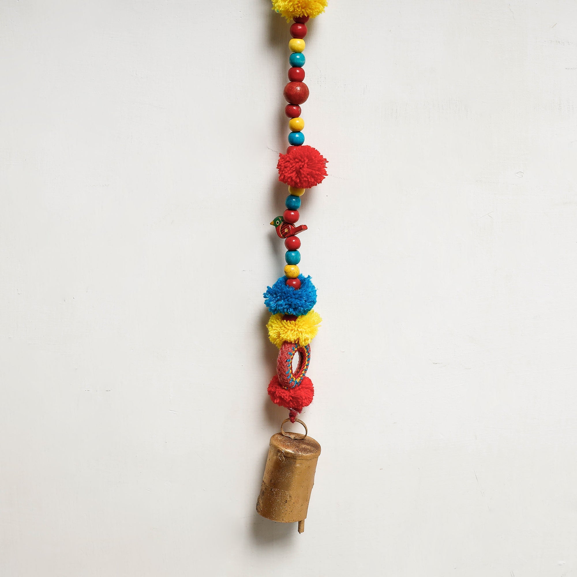 | Material | Patwa hanging made from thick weaves of thread with bell & glass beads handcrafted by the master craftsman Kailash Patwa. Patwa is a thread craft which originated in Rajasthan and is now practised in parts of Rajasthan. The word Patwa has been derived from the Hindi word ‘pat’ meaning silk and those involved in the silk and cotton thread business are called Patwas. |