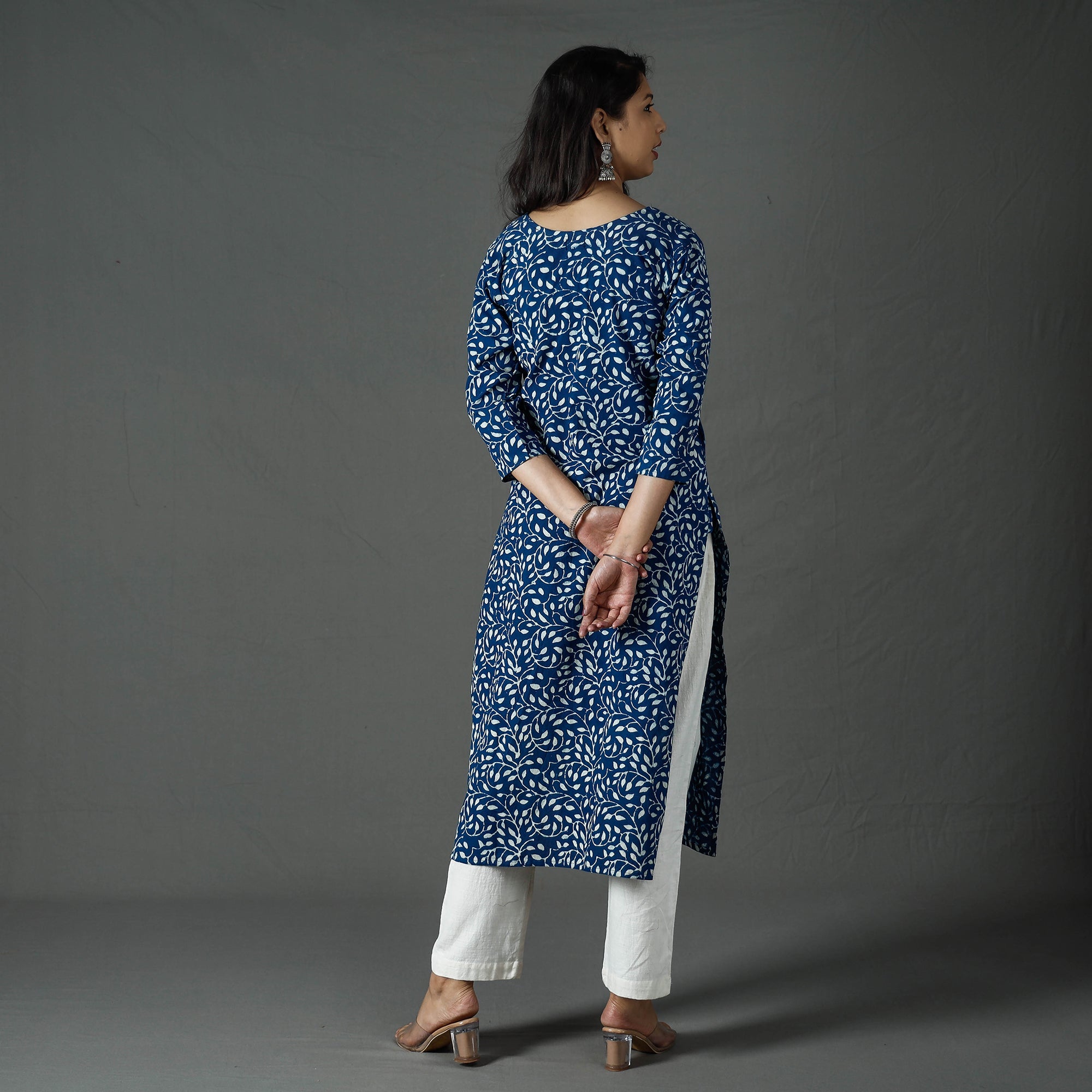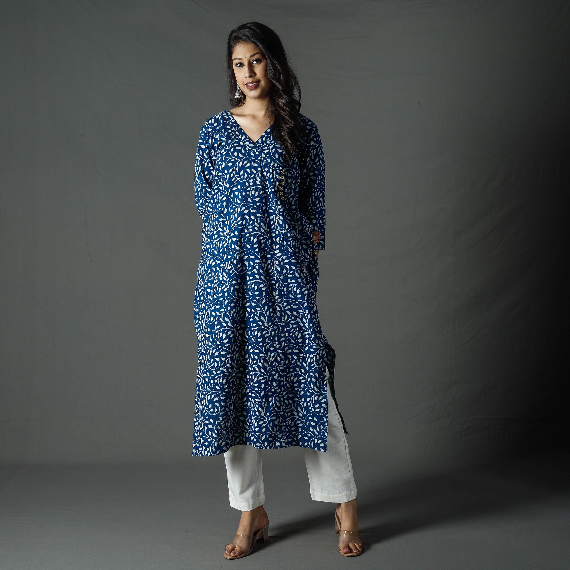 This exquisite pipad block printed long kurta is crafted from fine quality cotton and offers supreme comfort and breathability throughout the day. The kurta is adorned with vibrant, eco-friendly natural dyes that enhance its aesthetic appeal. It also features a convenient side pocket for added functionality. Each piece is meticulously handcrafted using traditional techniques, including natural dyeing and intricate hand block printing, ensuring unique and exquisite designs.