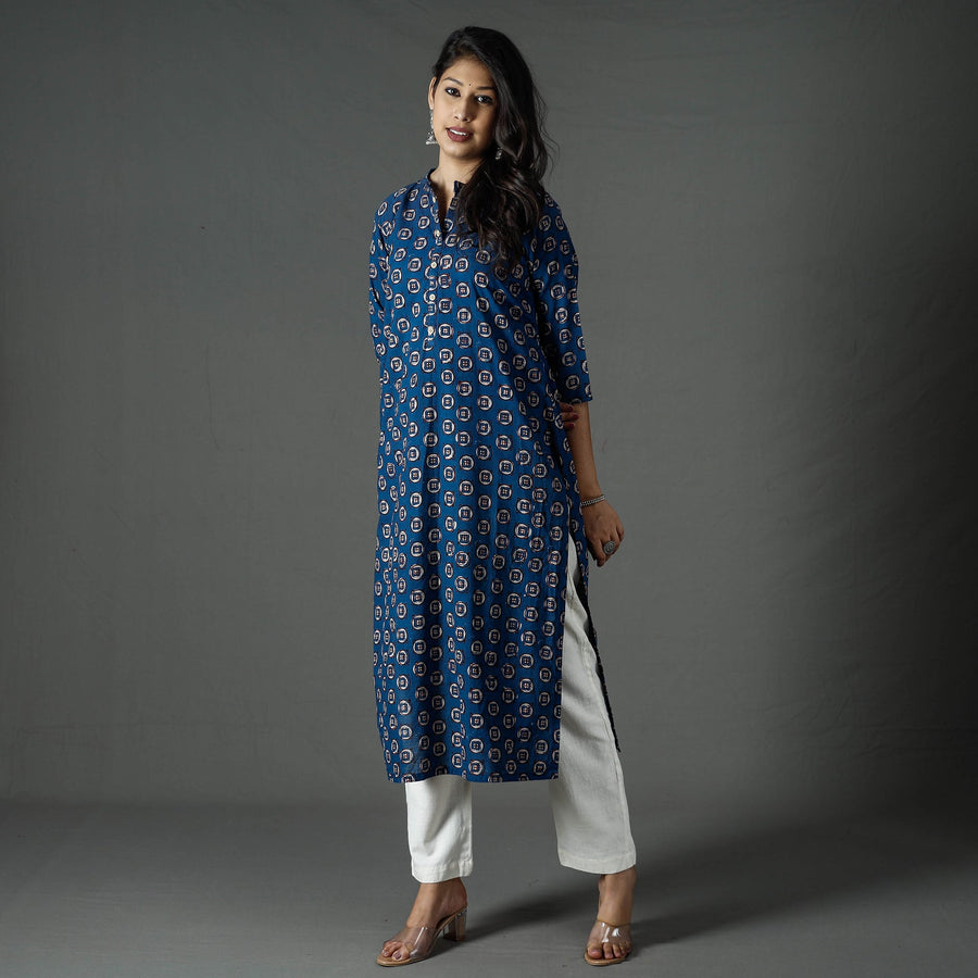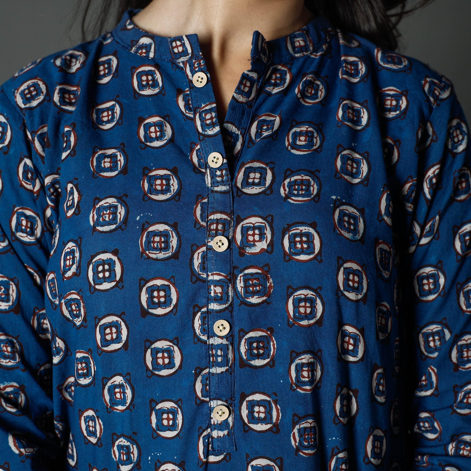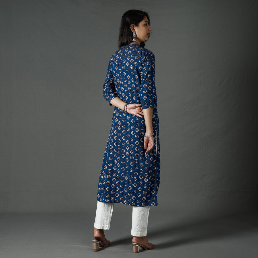 This exquisite pipad block printed long kurta is crafted from fine quality cotton and offers supreme comfort and breathability throughout the day. The kurta is adorned with vibrant, eco-friendly natural dyes that enhance its aesthetic appeal. It also features a convenient side pocket for added functionality. Each piece is meticulously handcrafted using traditional techniques, including natural dyeing and intricate hand block printing, ensuring unique and exquisite designs.