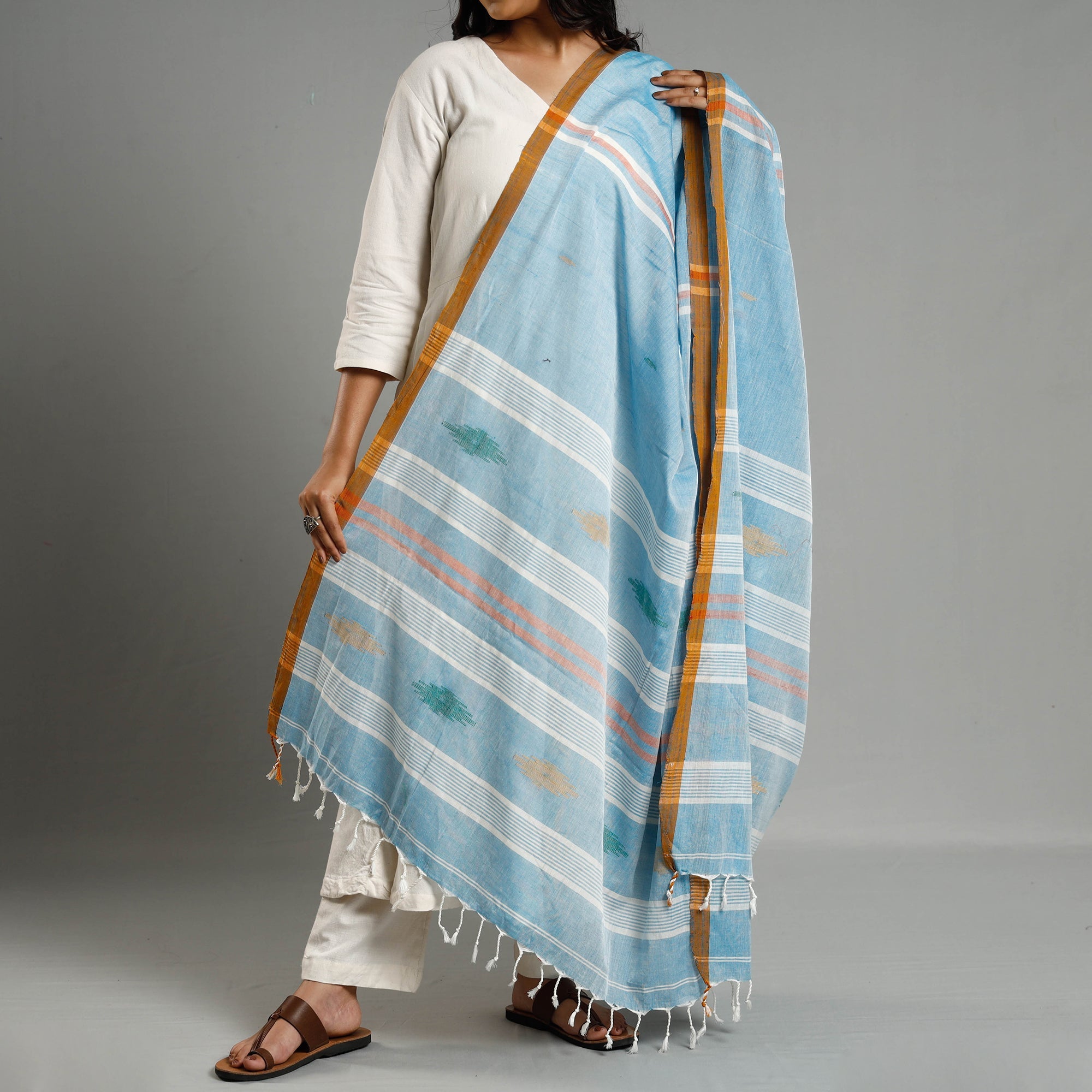 This exquisite Asssam weaving handloom cotton thread buti dupatta is crafted using cotton threads. The dupatta is lightweight, and breathable, making it perfect for all seasons. Skilled artisans in Assam meticulously hand-weave this dupatta using the traditional technique of handloom weaving. Each thread is carefully interlaced to create intricate buti patterns, showcasing the rich heritage of Assamese craftsmanship.