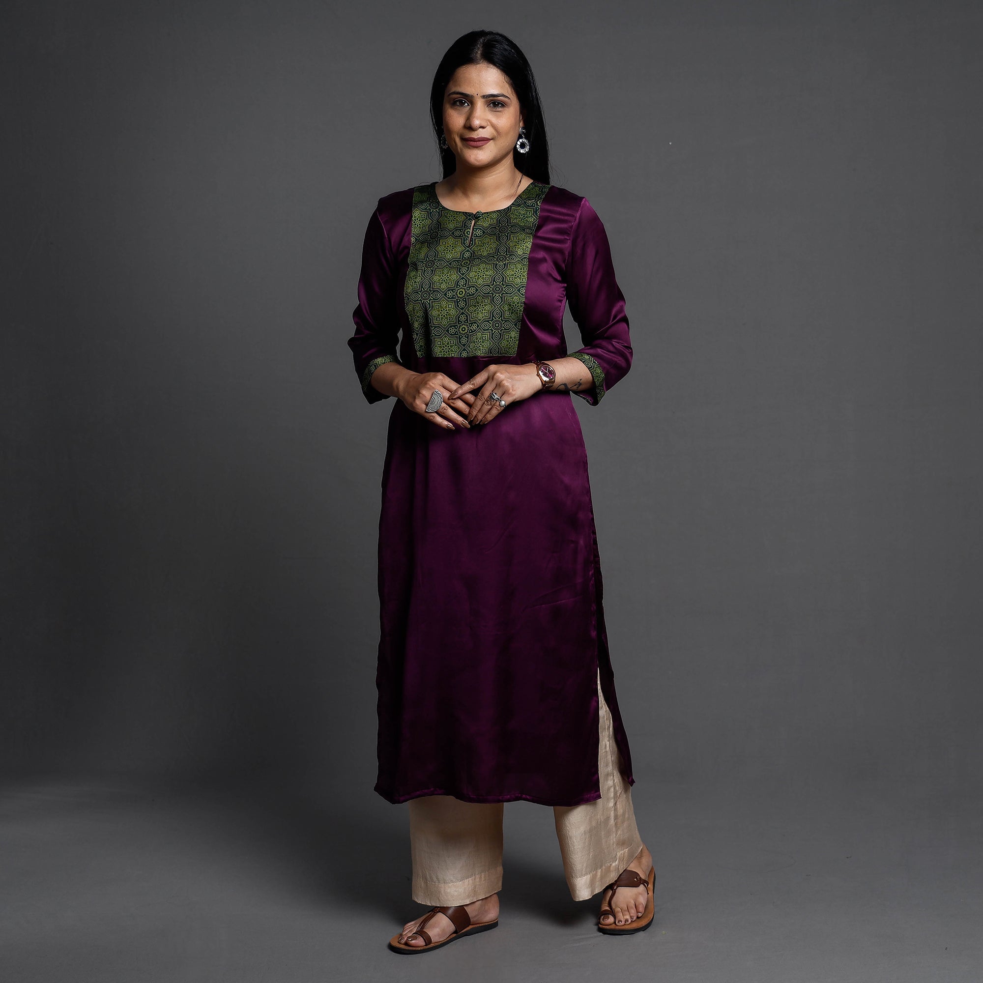 Dark Purple Modal Silk Plain Long Straight Kurta