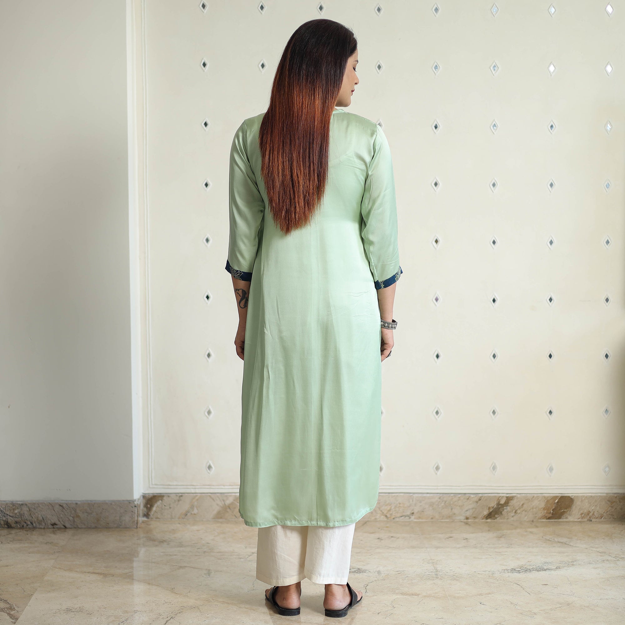 Look and feel beautiful in this uniquely designed palin modal silk long kurta with one side pocket. This modal silk kurta makes you comfortable with ease all day long. This kurta is perfect for your daily outing and for a special occasion. Modal silk is a soft, shiny and highly lustrous fabric, achieved through interlacing modal fibers and silk yarns. it has opulence of silk and the comfort of cotton modal is a fine and soft textured weave.