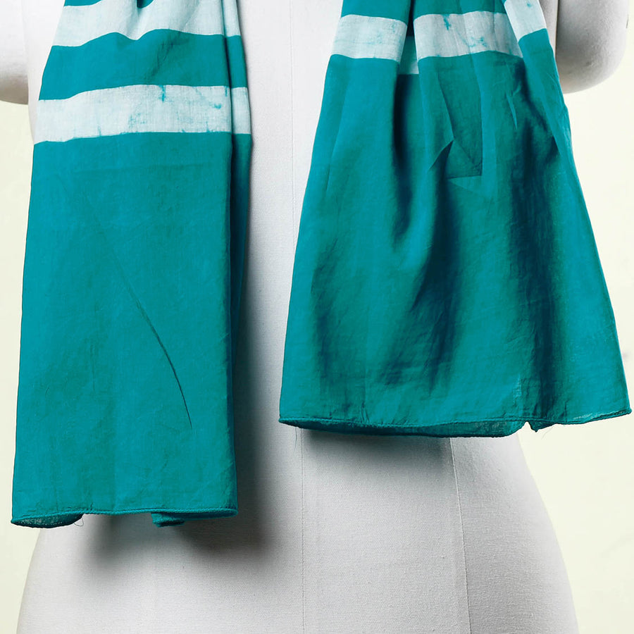 This blue batik hand block printed pure cotton stole is crafted from cotton fabric, known for its softness and breathability. This stole is meticulously handcrafted using the traditional technique of batik hand block printing. Skilled artisans employ wax-resist dyeing and hand block printing methods to create intricate patterns and designs on the fabric. Batik is a technique of wax-resist dyeing applied to whole cloth, or cloth made using this technique. The traditional designs and motifs in Indian batik are often passed down from one generation to another.