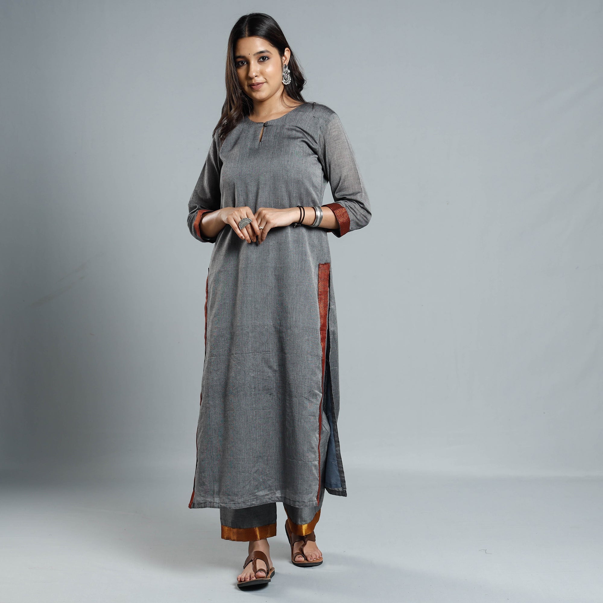 Look and feel beautiful in this uniquely designed dharwad stitched cotton long kurta with palazzo & dupatta set. This suit set contains a cotton kurta, palazzo, and cotton dupatta. The kurta has one side pocket, and the palazzo has two side pockets. This cotton suit makes you comfortable with ease all day long. This suit is perfect for your daily outing and for a special occasion.