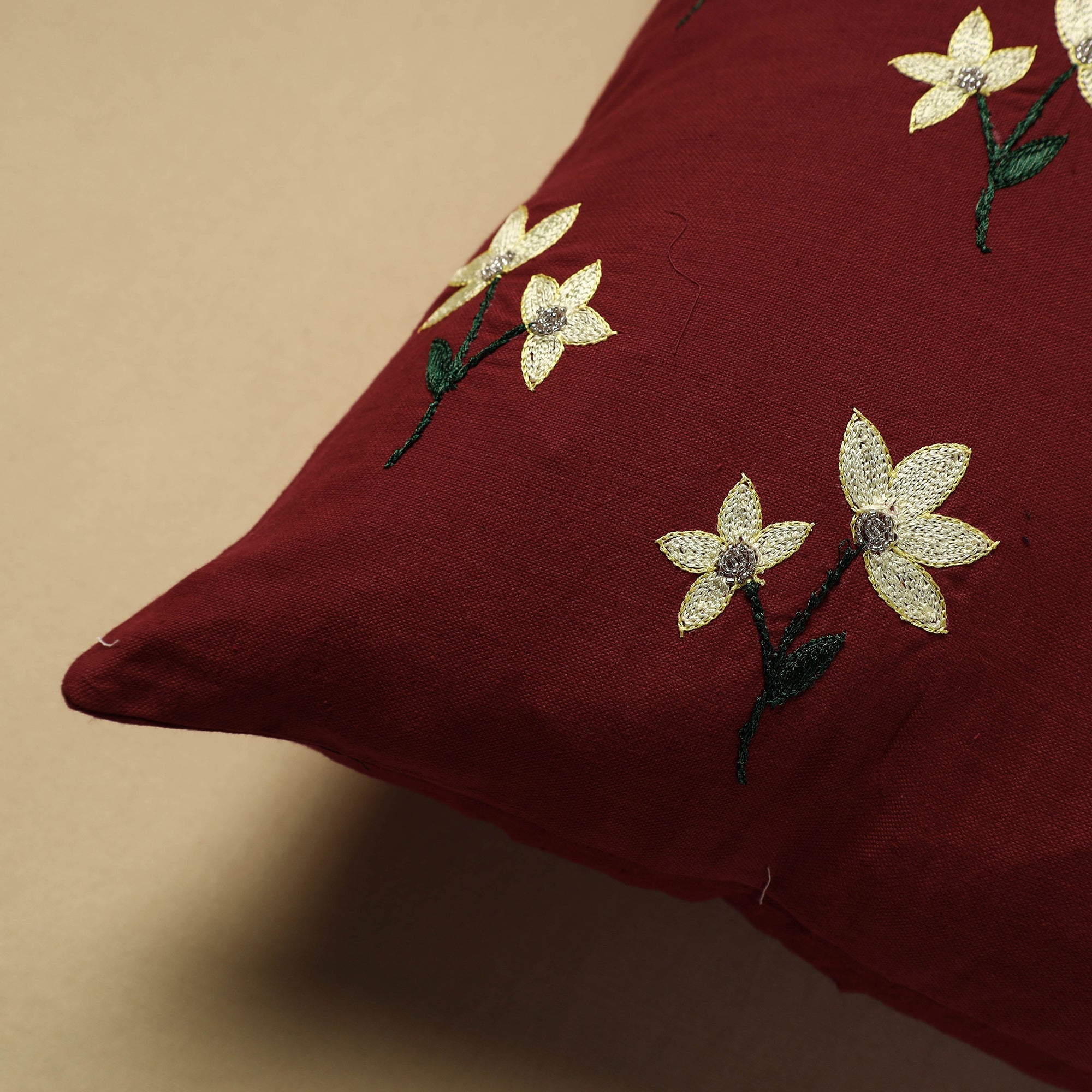 This beautiful hand embroidery cushion cover is made from high-quality plain handloom cotton fabric, known for its softness and durability. This cushion cover is meticulously crafted through the art of hand embroidery, where skilled artisans intricately stitch beautiful patterns and designs onto the cotton fabric, creating a unique and eye-catching piece. This versatile cushion cover can be used to adorn your living room, bedroom, or any space in need of a touch of elegance.