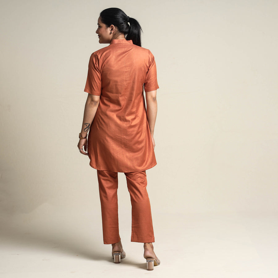 This exquisite orange linen viscose cotton blend top and pant co-ord set combines style and comfort effortlessly. The unique design and high-quality fabric ensure a beautiful and comfortable fit. Stay relaxed and chic all day long in this stunning co-ord set that is perfect for any occasion.