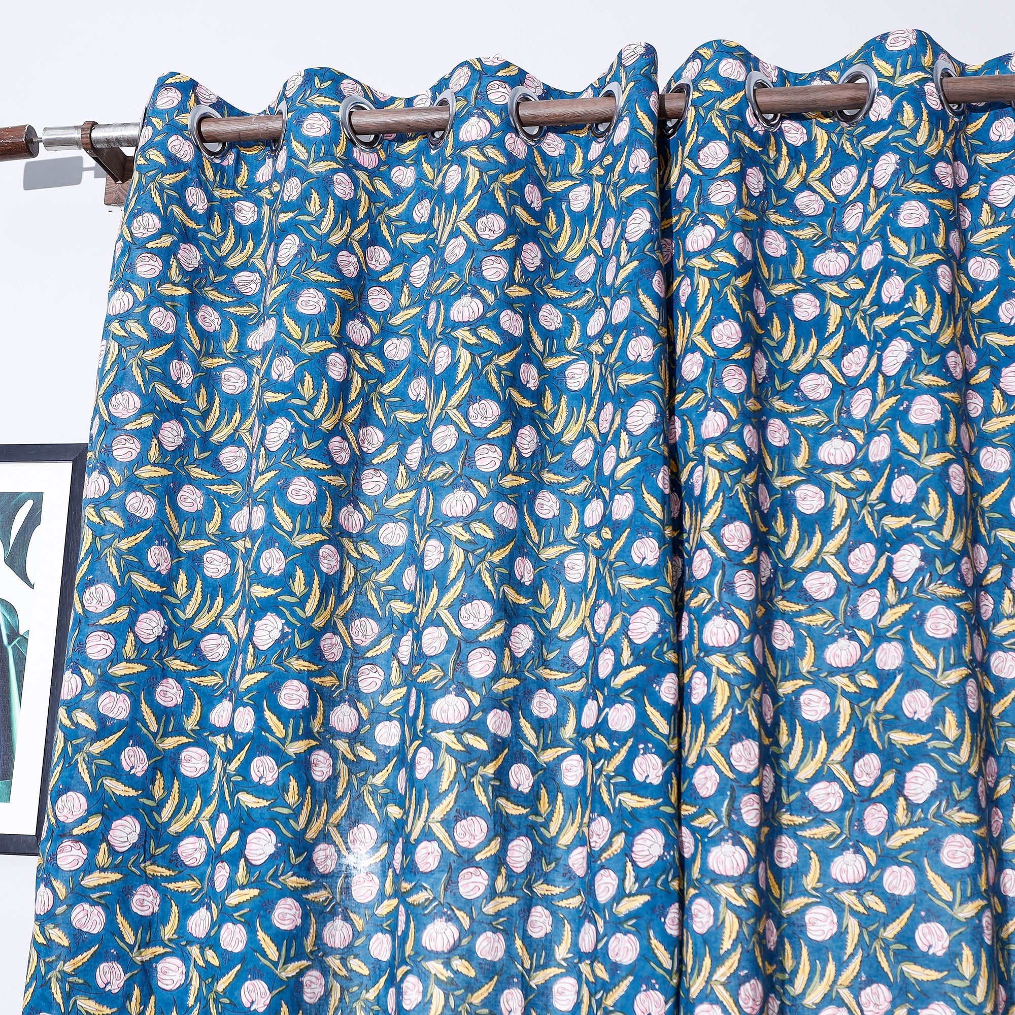 Material Add a beautiful feel to any room in your house by adding this floral sanganeri block printed cotton window curtain to your exquisite home decor collection. Originating from the vibrant village of Sanganer in Jaipur, Rajasthan, this hand-block printing technique adds a touch of elegance to any room. This curtain showcases intricate floral patterns. Crafted with bleed-free VAT dyes.