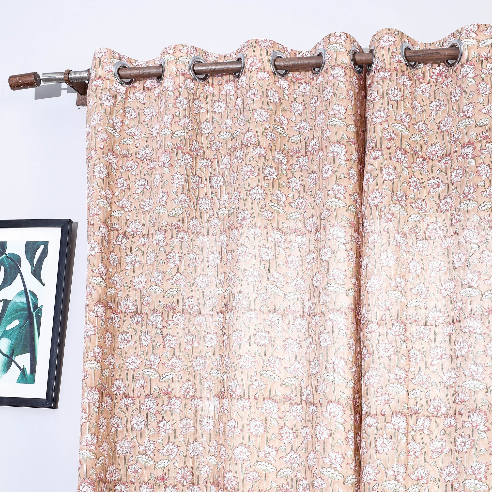 Material Add a beautiful feel to any room in your house by adding this floral sanganeri block printed cotton window curtain to your exquisite home decor collection. Originating from the vibrant village of Sanganer in Jaipur, Rajasthan, this hand-block printing technique adds a touch of elegance to any room. This curtain showcases intricate floral patterns. Crafted with bleed-free VAT dyes.