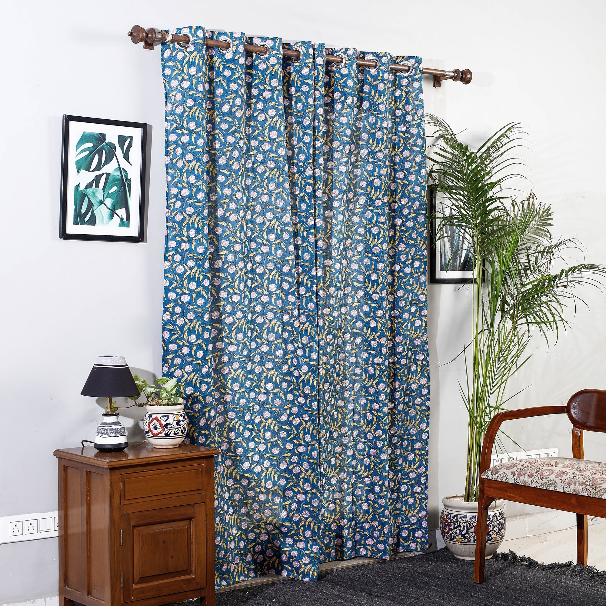 Blue - Sanganeri Block Printed Cotton Door Curtain (7 x 3 Feet) (Single Piece)