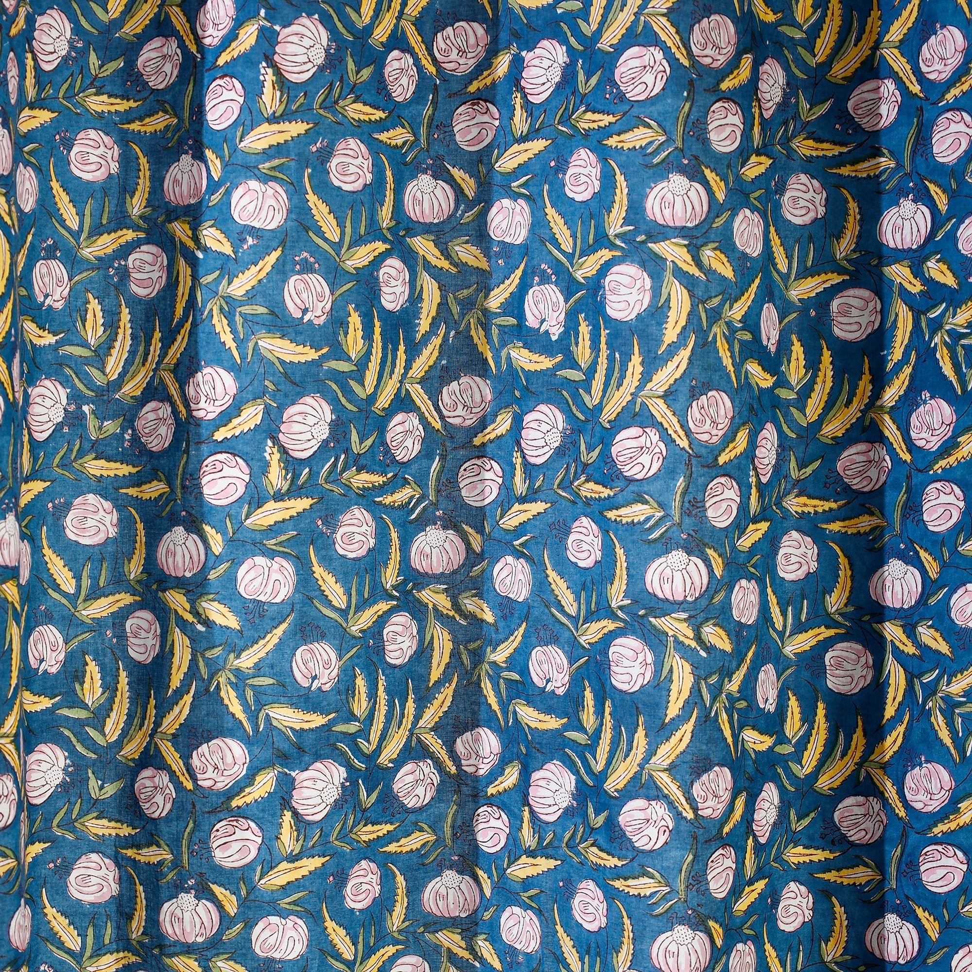 Material Add a beautiful feel to any room in your house by adding this floral sanganeri block printed cotton door curtain to your exquisite home decor collection. Originating from the vibrant village of Sanganer in Jaipur, Rajasthan, this hand-block printing technique adds a touch of elegance to any room. This curtain showcases intricate floral patterns. Crafted with bleed-free VAT dyes.
