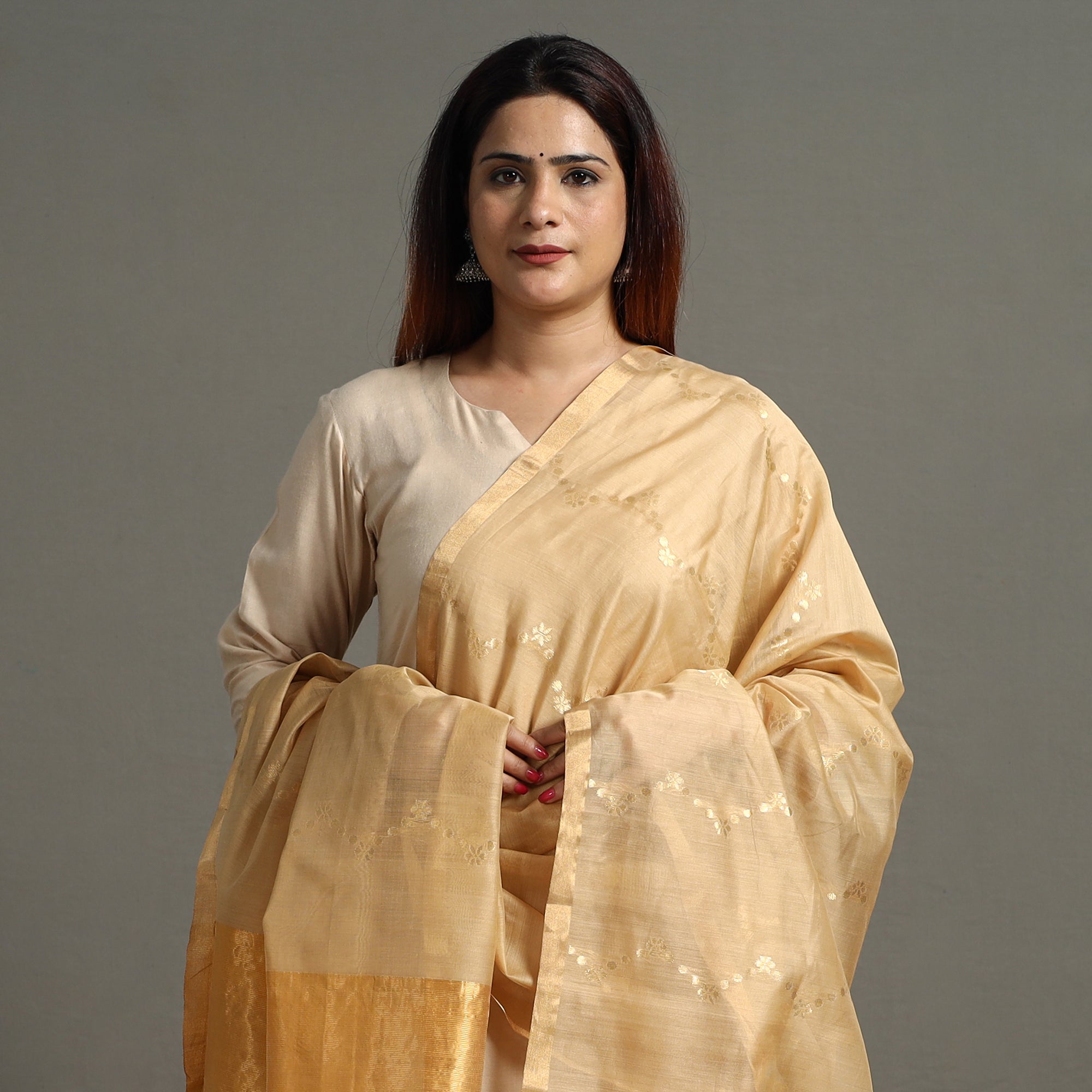 Fine quality traditional Chanderi silk handloom zari buti dupatta. Crafted with utmost precision and care, this dupatta features intricate zari weaving that adds a touch of glamour and sophistication. The delicate zari butis scattered across the fabric create a mesmerizing pattern, reflecting the rich heritage of Chanderi silk. Made from pure silk, this dupatta drapes gracefully and exudes timeless charm.