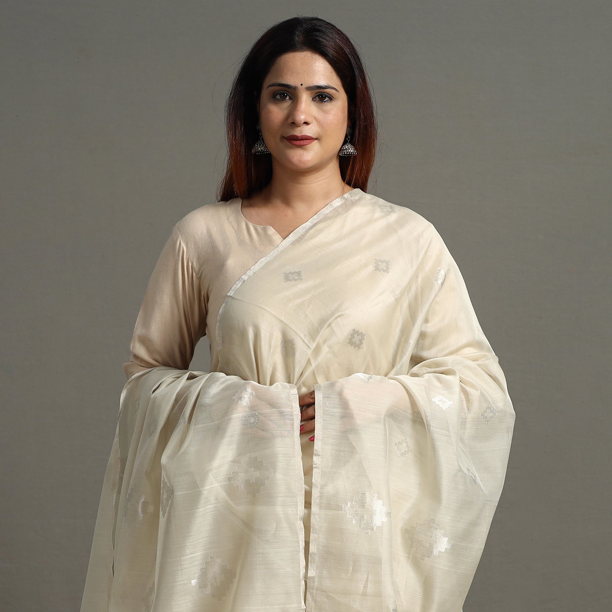 Fine quality traditional Chanderi silk handloom zari buti dupatta. Crafted with utmost precision and care, this dupatta features intricate zari weaving that adds a touch of glamour and sophistication. The delicate zari butis scattered across the fabric create a mesmerizing pattern, reflecting the rich heritage of Chanderi silk. Made from pure silk, this dupatta drapes gracefully and exudes timeless charm.