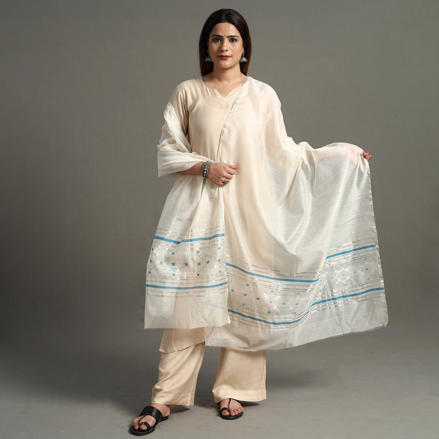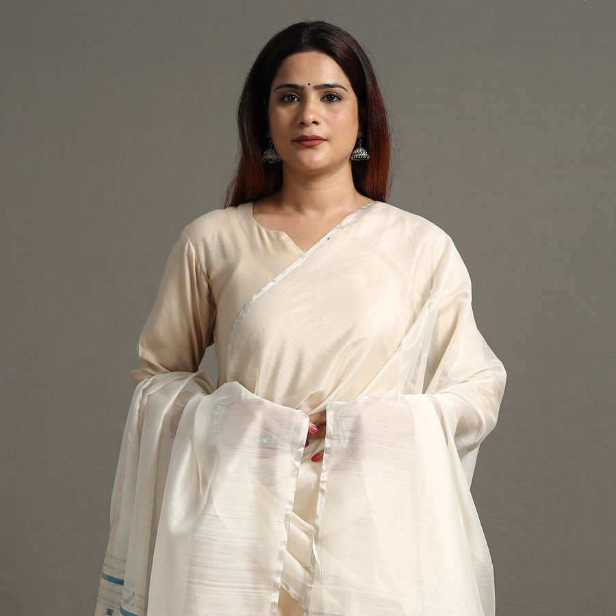 Fine quality traditional Chanderi silk handloom zari buti dupatta. Crafted with utmost precision and care, this dupatta features intricate zari weaving that adds a touch of glamour and sophistication. The delicate zari butis scattered across the fabric create a mesmerizing pattern, reflecting the rich heritage of Chanderi silk. Made from pure silk, this dupatta drapes gracefully and exudes timeless charm.