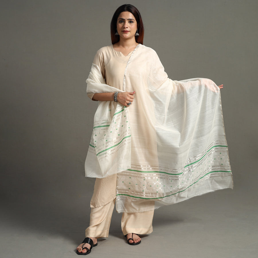 Fine quality traditional Chanderi silk handloom zari buti dupatta. Crafted with utmost precision and care, this dupatta features intricate zari weaving that adds a touch of glamour and sophistication. The delicate zari butis scattered across the fabric create a mesmerizing pattern, reflecting the rich heritage of Chanderi silk. Made from pure silk, this dupatta drapes gracefully and exudes timeless charm.