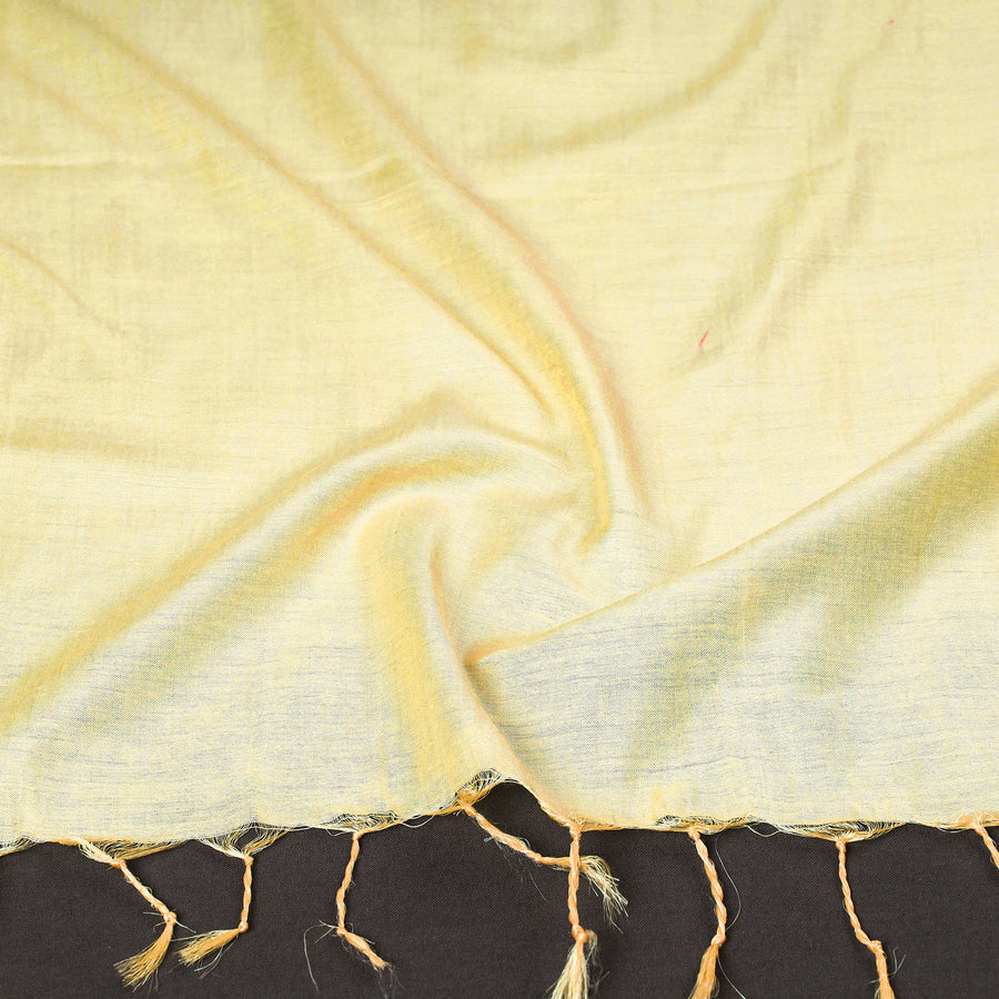 Indulge in the luxurious allure of this fine quality vidarbha pure tussar silk cotton handloom stole. Crafted with utmost precision, this stole showcases the unique characteristics of Tussar silk, combining the lustrous sheen of silk with the comfortable feel of cotton. The result is a perfect blend of both worlds, making it a versatile accessory suitable for all seasons.