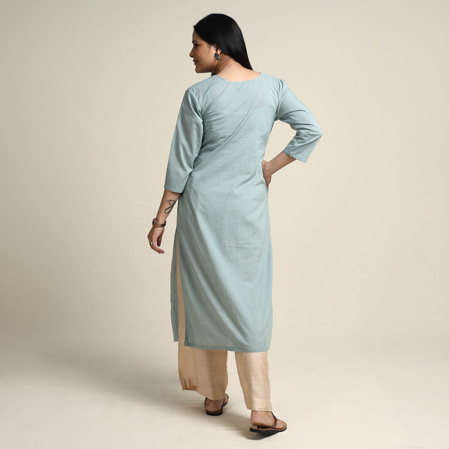 This plain dyed hand embroidery cotton long kurta is a perfect blend of style and comfort. It features a one-side pocket and is made from cotton fabric, ensuring ease and comfort throughout the day. The hand embroidery adds a touch of elegance and uniqueness to the kurta. This cotton kurta makes you comfortable all day long. Upgrade your wardrobe with this versatile and fashionable kurta.