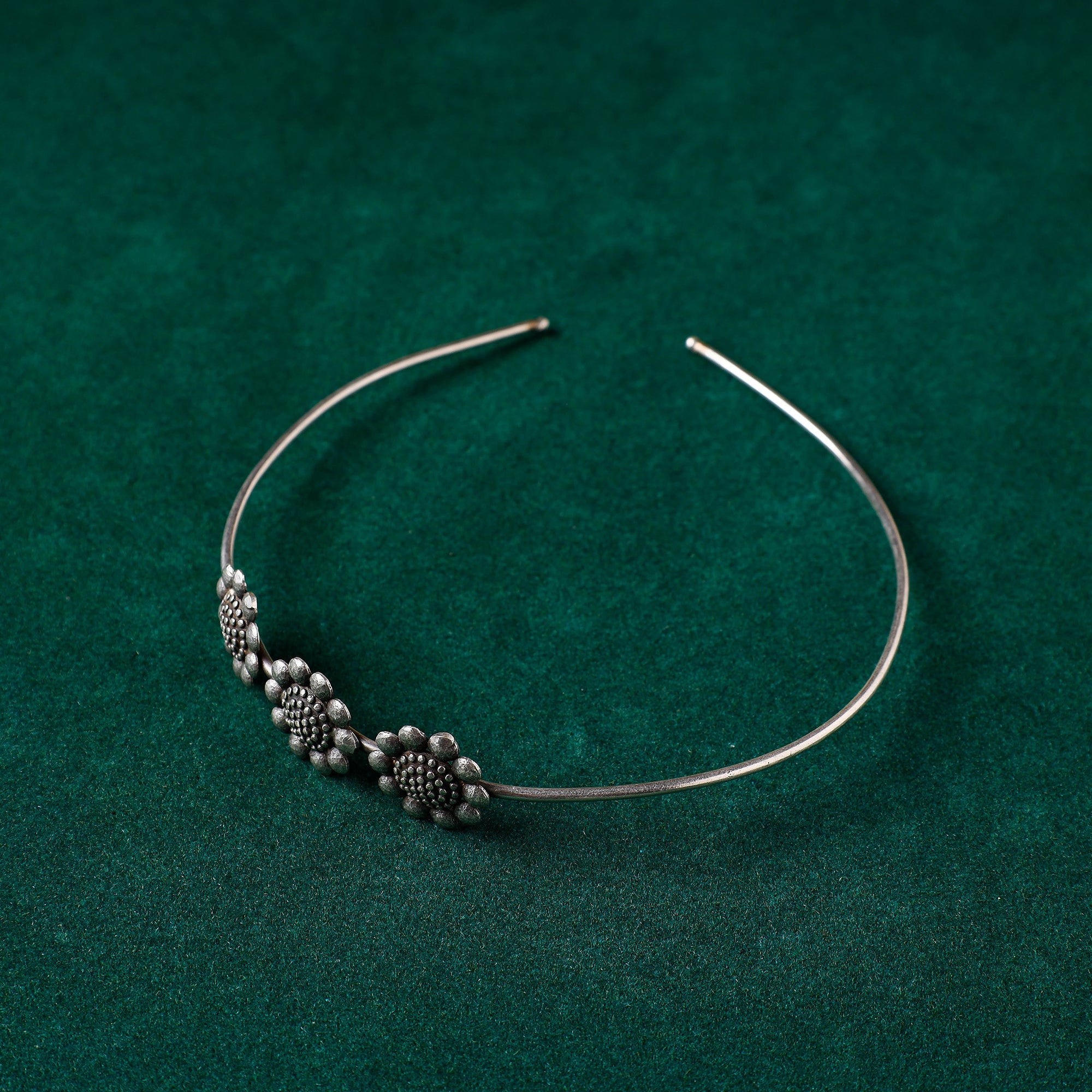 This exquisite antique silver finish hair band, made with a high-quality oxidised brass base, radiates elegance and charm. The rustic shine effect enhances its allure, making it a timeless accessory that adds a touch of sophistication to any hairstyle.