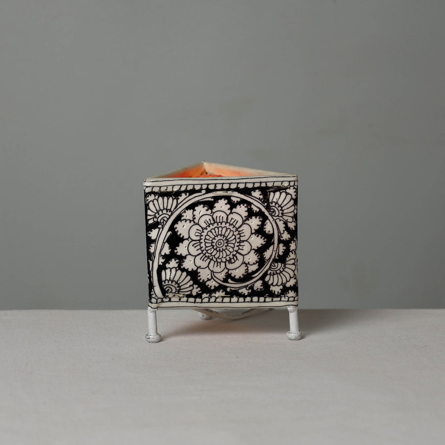 | Material | Handpainted Tholu Bommalata leather table top/side lamp from Andhra Pradesh. Material used - leather, iron frame, camlin colors, bulb holder with plug and wire.Tholu Bommalata is the shadow puppet theatre tradition of the state of Andhra Pradesh in India. Tholu bommalata literally means "the dance of leather puppets" (tholu – "leather" and bommalata – "puppet dance") is a 2000 year old craft and is one of the oldest form of performing arts.. The traditional process of crafting shadow puppets requires 30-40 days, from the procurement of leather to the completion of the product. Two other kinds of shadow puppetry are practiced in Andhra Pradesh, the Sutram Bommalata (String puppets) and the Koyya Bommalata(Wooden puppets). The leather puppets, because of their transparency and jewel like glow, are most popular. The puppets are mounted in the middle on a palm stem, extended to form a handle used to move the body of the puppet. The puppets are painted with hands using camlin colours. But apart from the translucency and vivid colours, what gives these puppets their brilliance, is the perforated designs drawn on the characters to depict jewellery. Once surrounded by colour and viewed against the light, they look like glowing jewels. |