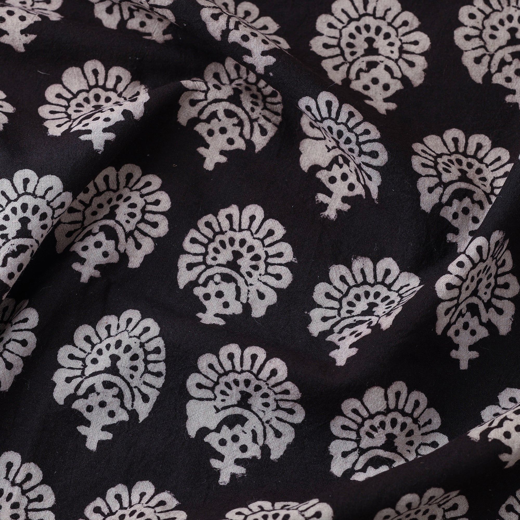Black - Natural Dyed Cotton Hand Block Bagh Print Fabric 17