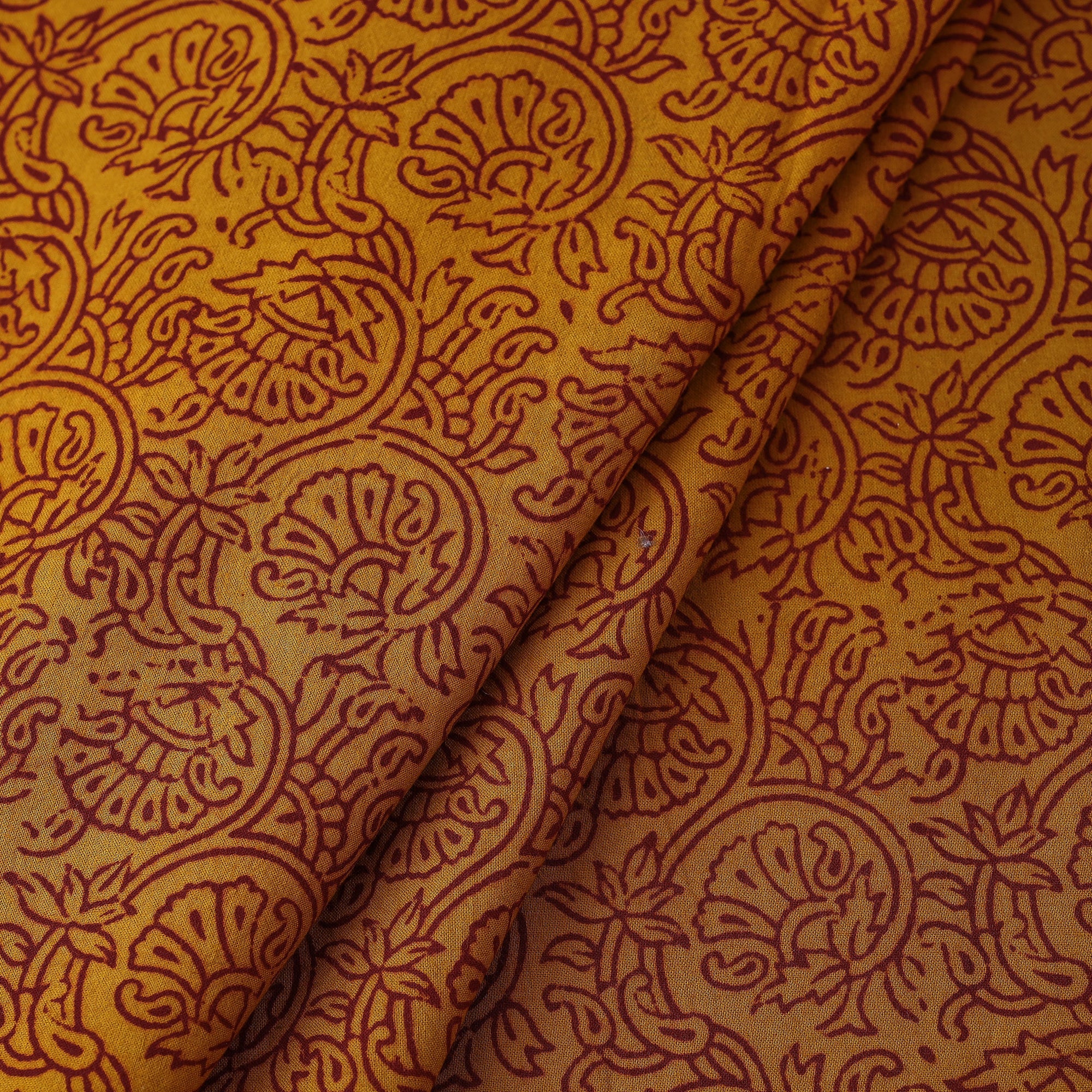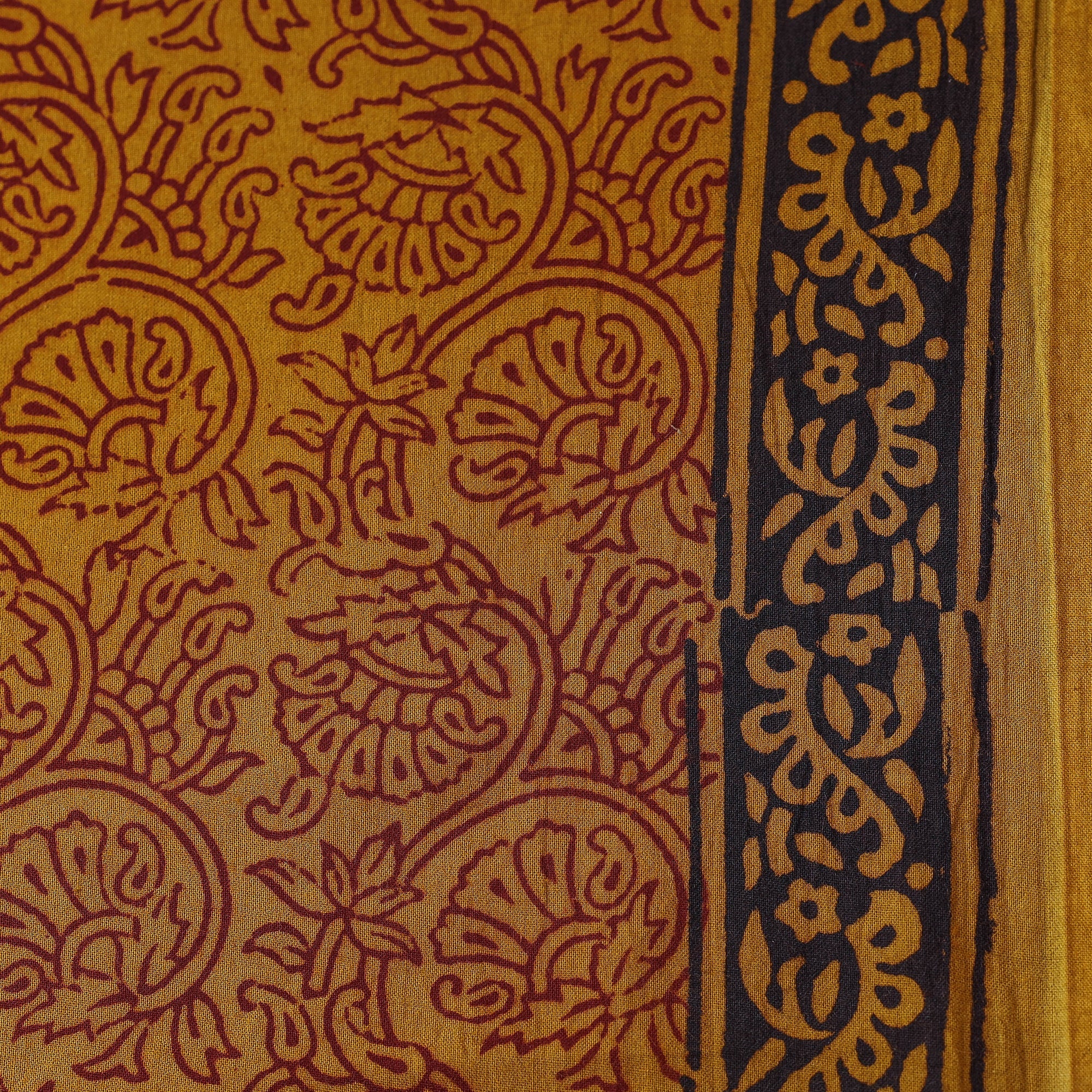 Fine quality brown bagh hand block printed natural dyed cotton fabric. Meticulously made by master artisan Mohammed Rafik Ji Khatri, who practices the age-old art of Bagh block printing in the Dhar district of Madhya Pradesh, this fabric is a testament to skilled artistry. Using natural dyes and following traditional processes, each motif and pattern on the fabric is carefully hand block printed, creating a unique and exquisite design