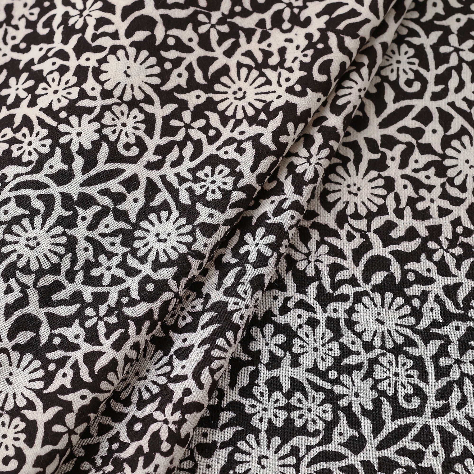 Black - Natural Dyed Cotton Hand Block Bagh Print Fabric 03