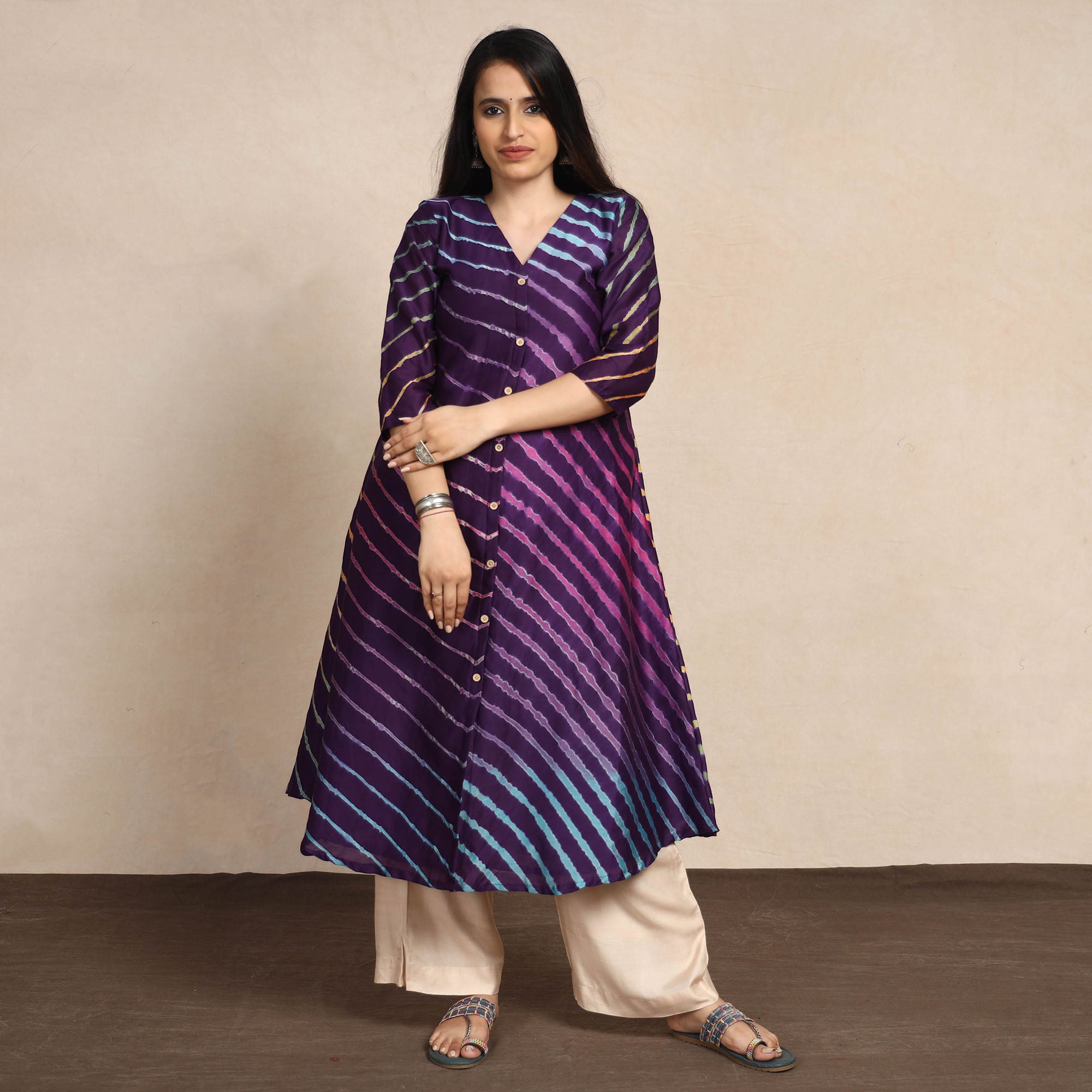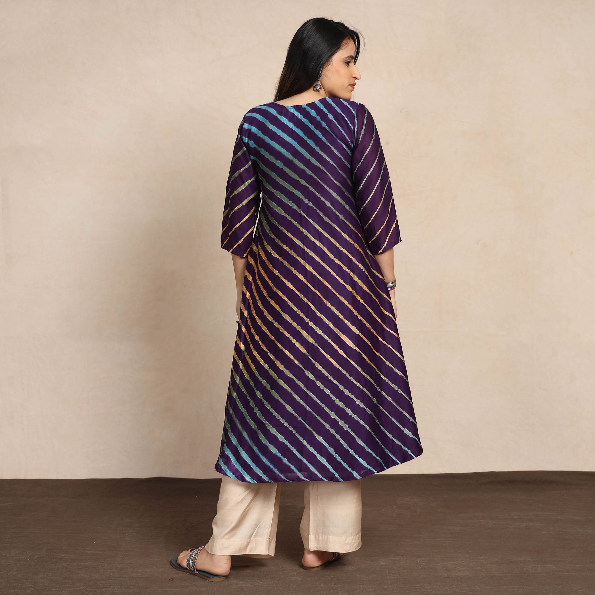 This leheriya tie-dye chanderi silk long kurti is made from high-quality chanderi silk, known for its luxurious texture and elegant sheen. The kurti features a unique leheriya tie-dye design, adding a touch of artistic flair. It also comes with a side pocket, offering convenience and functionality. This silk kurti makes you comfortable all day long. This kurti is a versatile choice for both daily outings and special occasions.