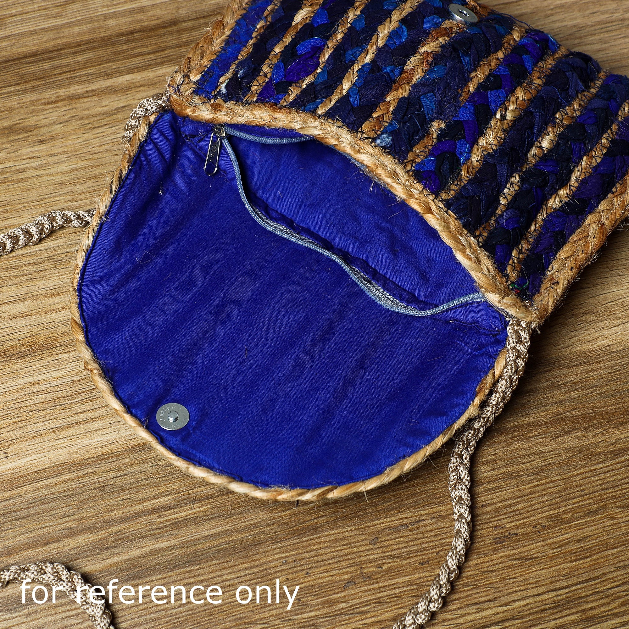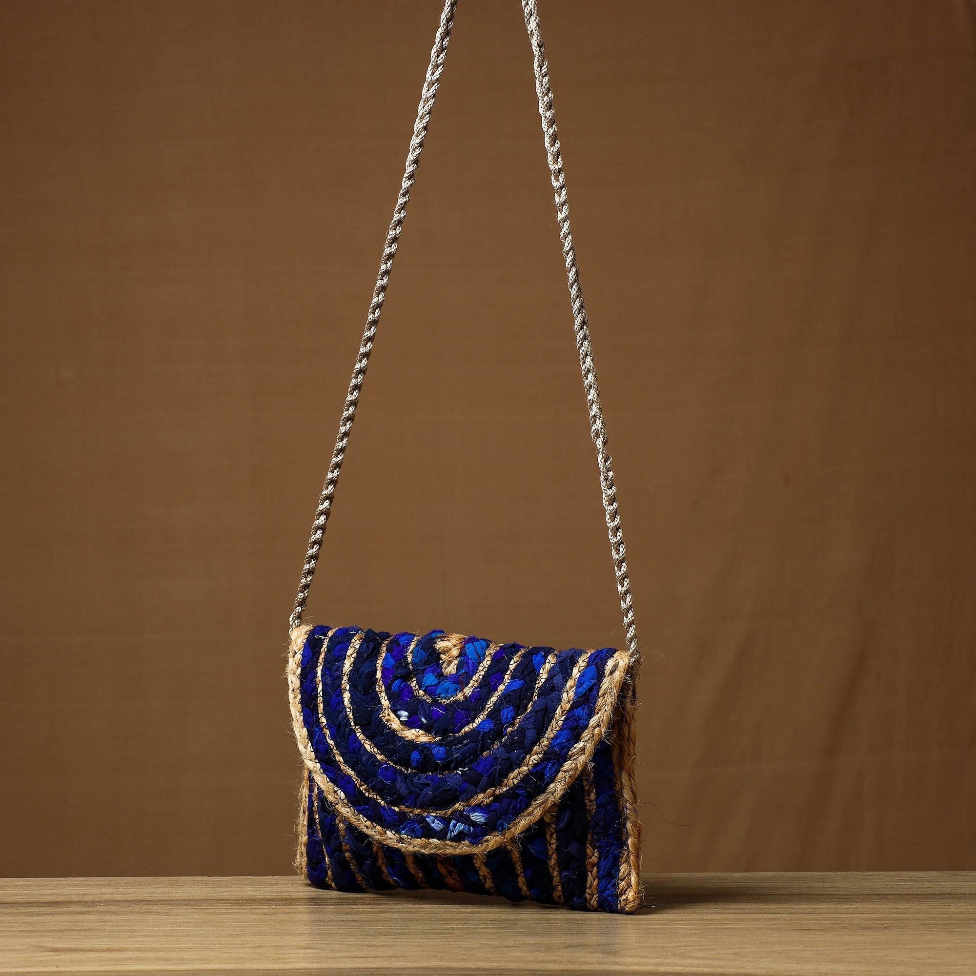 Introducing our blue handcrafted multipurpose jute sling bag, made from jute. Featuring a convenient zipper pocket inside, this is a versatile and eco-friendly accessory that combines style with sustainability. Carefully handcrafted with love and precision, this bag is made from natural jute fibres, creating a unique and environmentally conscious design.