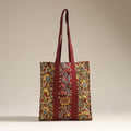 This yellow handpainted kalamkari shoulder bag is crafted from natural dyed cotton fabric. With ample space, it allows you to conveniently carry and organize your essentials. This exquisite shoulder bag is created with handpainted kalamkari work, wherein the "Bamboo kalam" is used for freehand drawing of the subject and filling in the colours. It is entirely hand worked using natural colours.