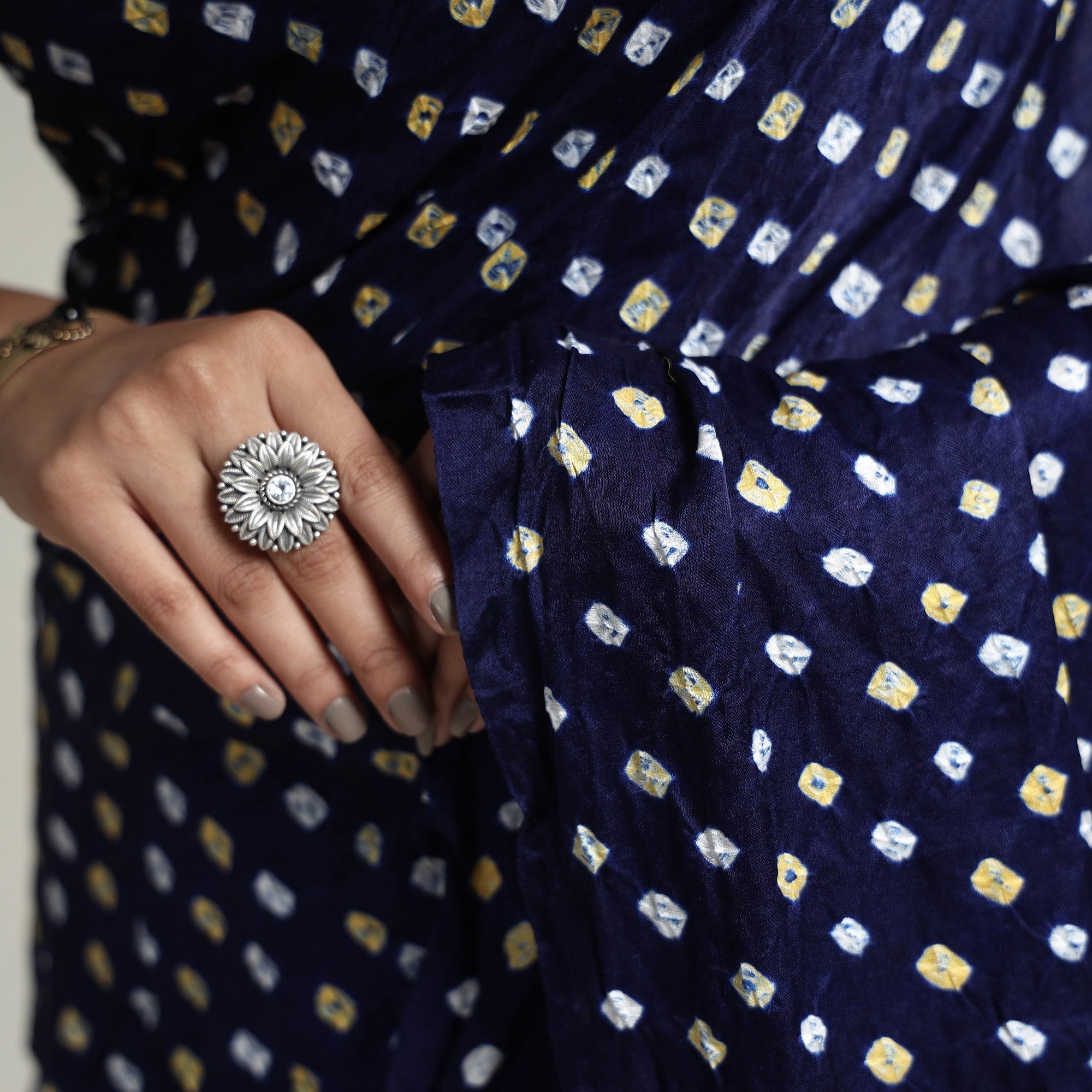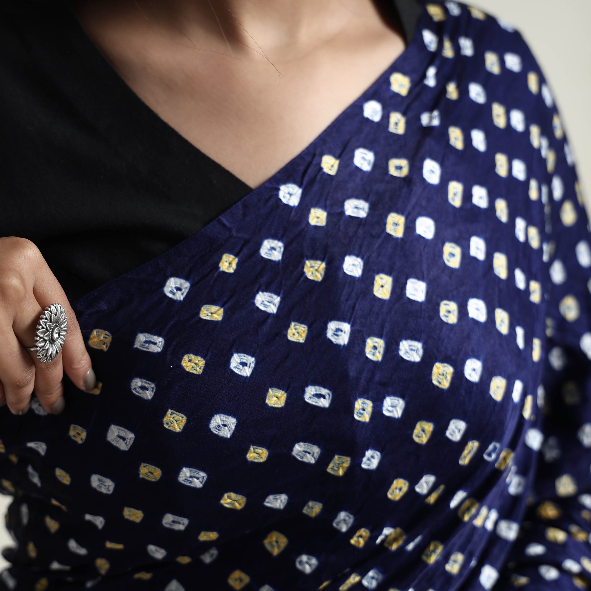 Bandhani originated around 5000 years ago making it one of the oldest crafts of Gujarat, that is still widely practiced as a famous tye-and-dye technique. The word `Bandhani` is derived from the word `Bandhan` which means tying up.