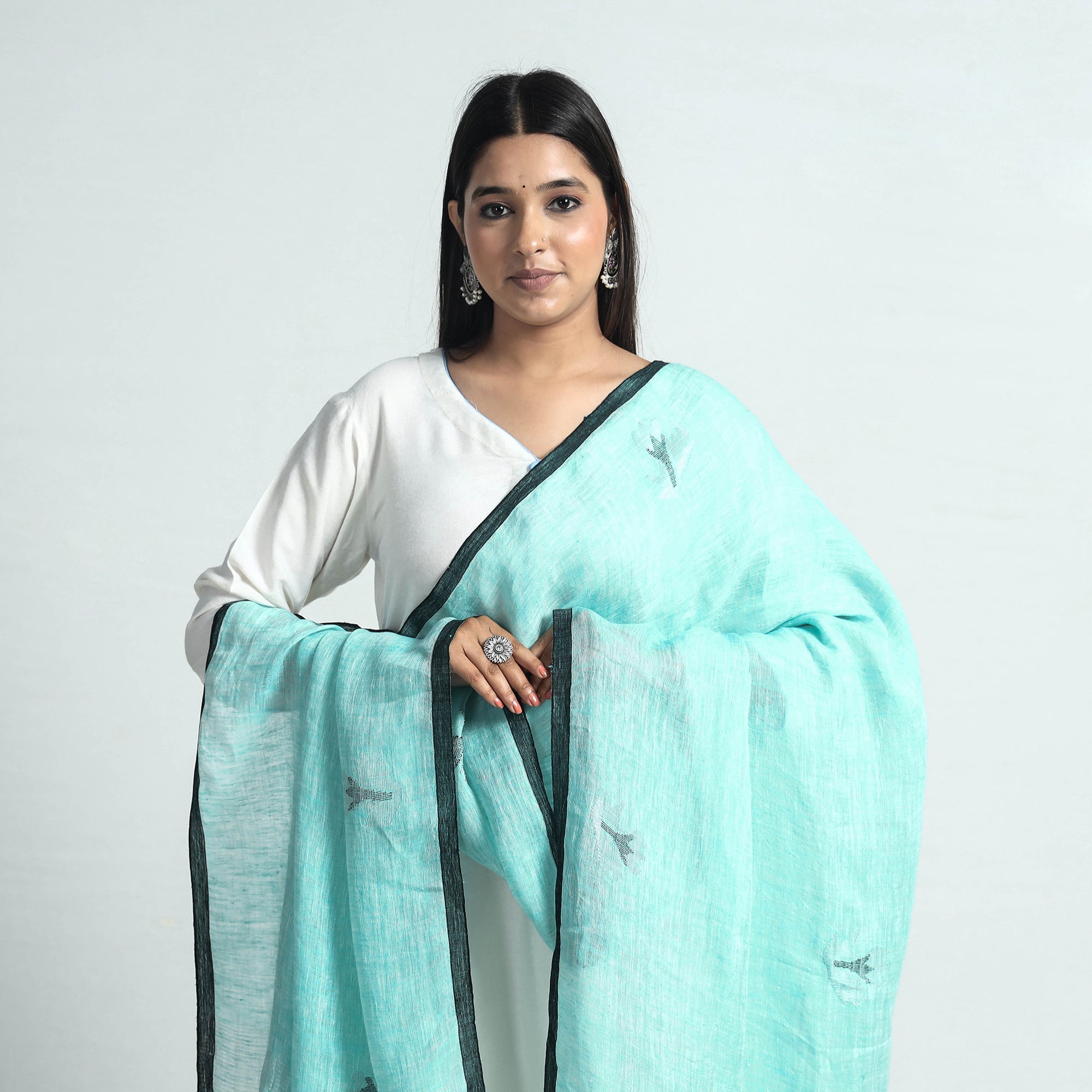 This exquisite bengal handloom linen zari buta dupatta with tassels is crafted by skilled artisans from the Burdwan District of Bengal. Made from flax plant fiber, linen is known for its versatility and ability to keep you cool and fresh in hot weather. This dupatta undergoes a meticulous handloom weaving process, ensuring its fine quality and intricate design.