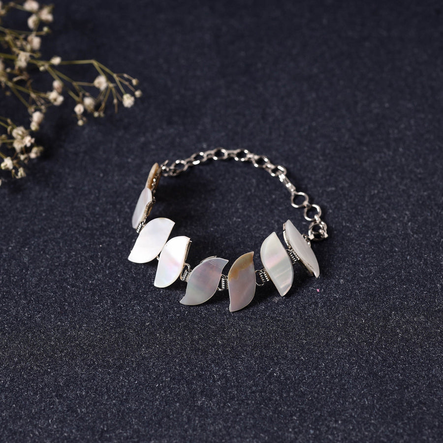 | Material | Handcrafted natural seashell bracelet. Made from steel and natural mother of pearl shells, this stunning accessory adds a touch of natural beauty to any outfit. Versatile and elegant, it's the perfect choice for every occasion. Adorn your wrist with our exquisitely handcrafted seashell stretch bracelet. |