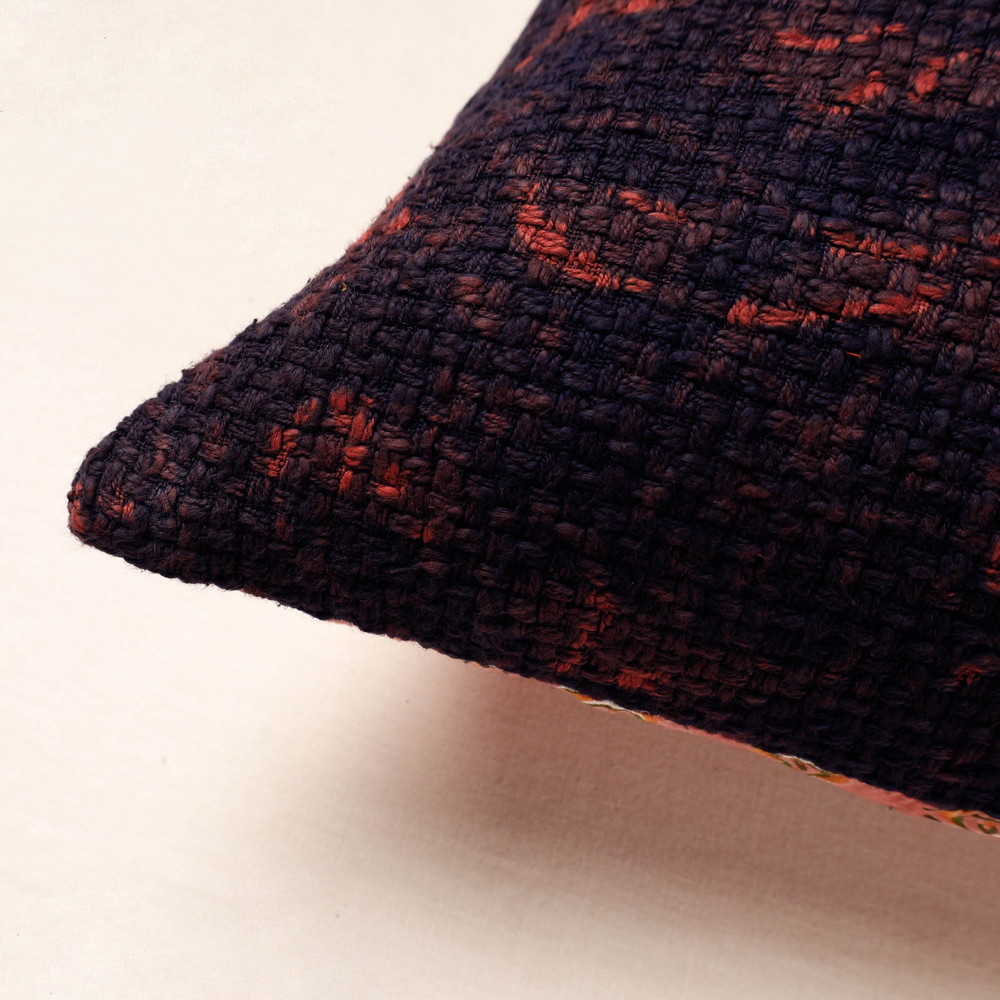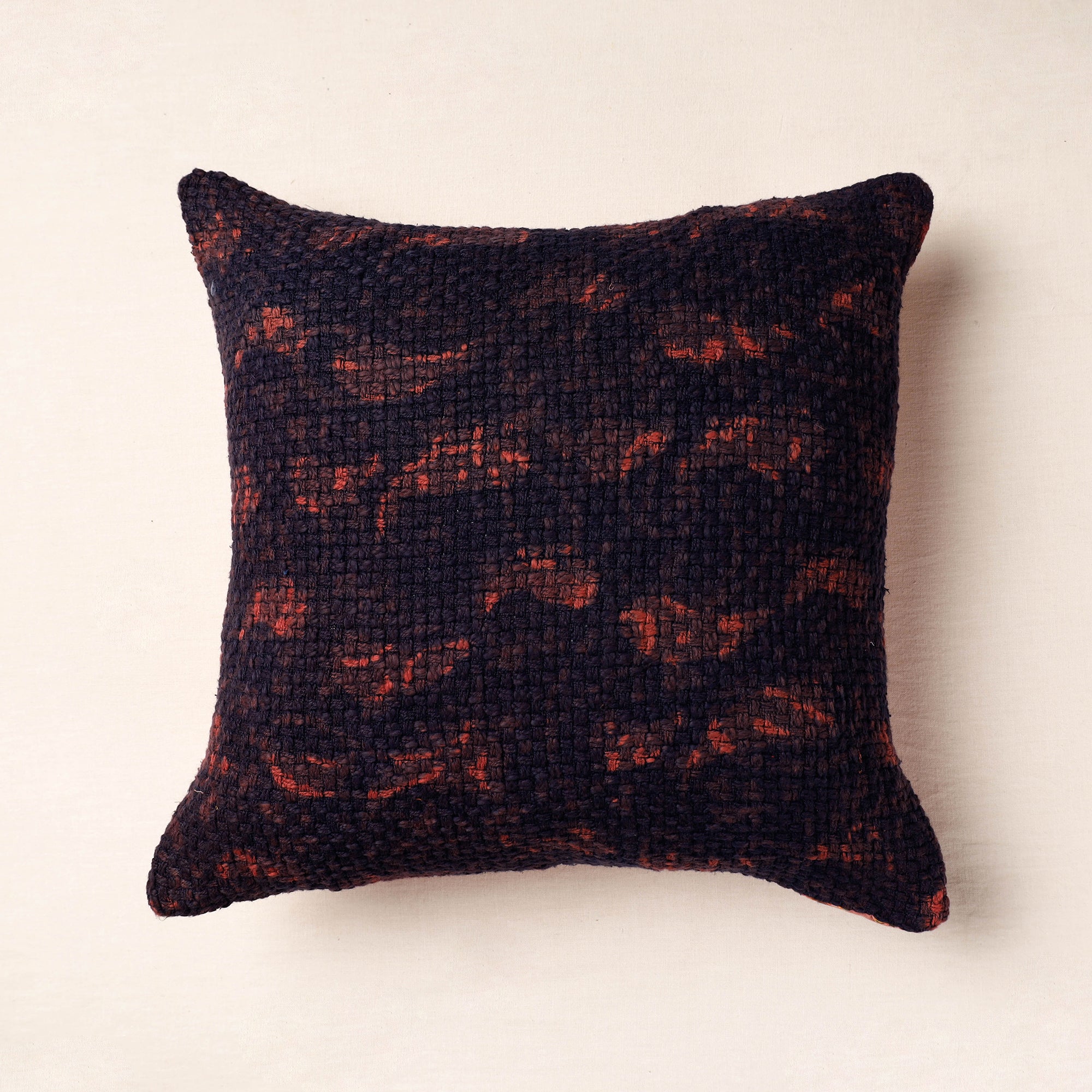 This exquisite bagru hand block printed cushion cover is made from handloom jute fabric, known for its durability and natural appeal. The back of the cover is crafted from cotton fabric, adding to its comfort and versatility. The cushion cover is made using natural dyes through a traditional mud resist process using hand-carved wooden blocks practised in Bagru, Rajasthan. This exquisite cushion cover is perfect for enhancing the beauty of your living space.