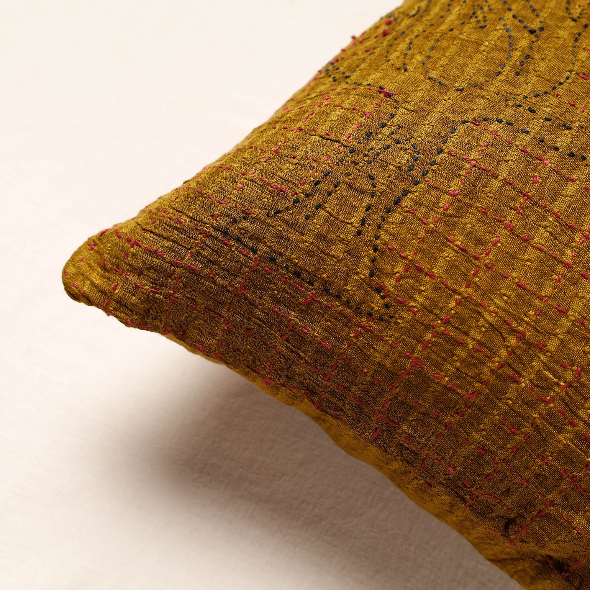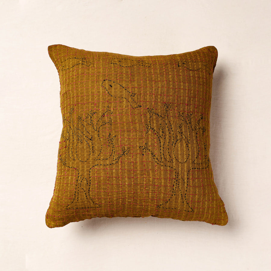 This cotton cushion cover showcases the exquisite artistry of kantha tagai, a traditional hand embroidery technique. Adorned with contemporary patterns, it is meticulously crafted using thread yarns. This piece combines the charm of traditional craftsmanship with a modern aesthetic, making it a stylish addition to any home decor.
