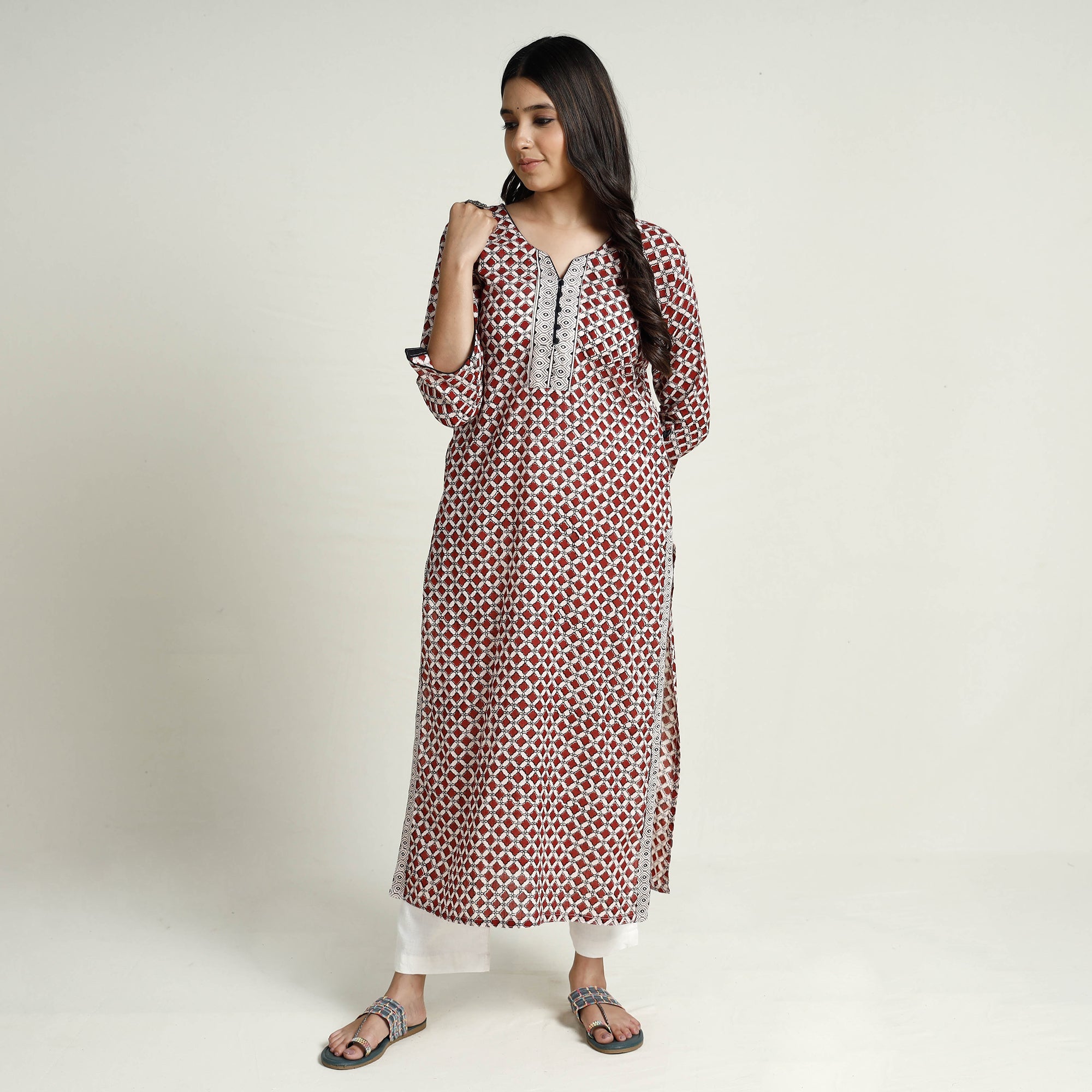 Look and feel beautiful in this uniquely designed red block print mul cotton straight bagh kurta. Designed for all-day comfort, the soft and breathable mul cotton fabric ensures you stay cool and comfortable, making it ideal for daily wear. Complete with a side pocket, it offers both functionality and fashion-forward appeal. Perfect for both casual outings and special occasions.