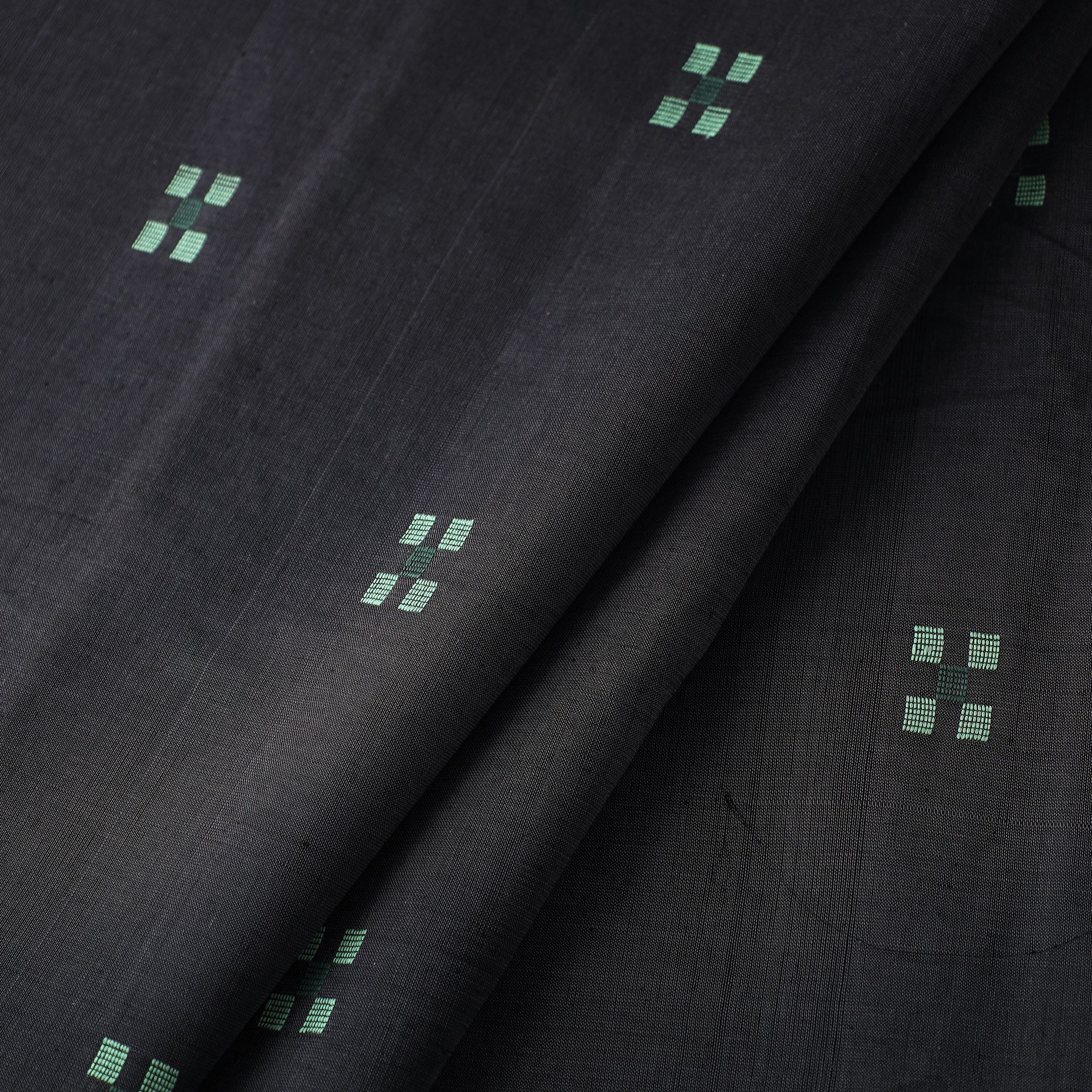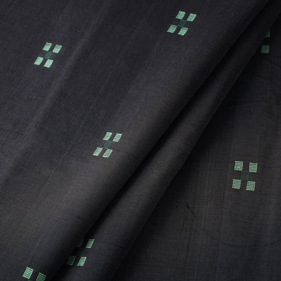 Fine quality srikakulam jamdani buti pure handloom cotton fabric from Andhra Pradesh. Azo free dyes have been used to make this fabric. The base fabric for Jamdani is unbleached cotton yarn and the design is woven using bleached cotton yarns so that a light-and-dark effect is created. The process is extremely time consuming as it involves a tedious form of hand looming. The making of Jamdani involves the supplementary weft technique along with the standard weft technique. With the latter, the base sheer material is made on which thicker threads on used to create designs.