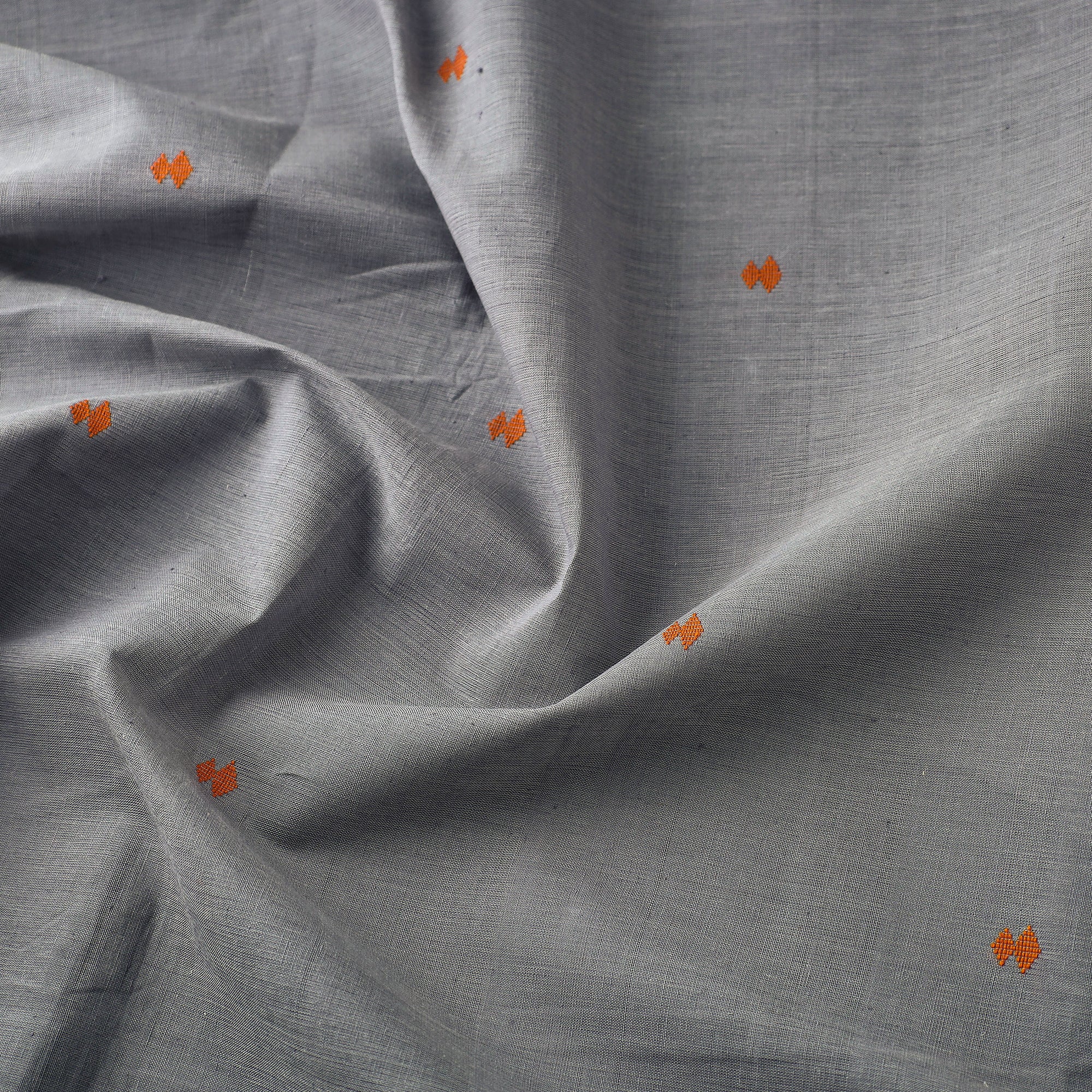 Fine quality srikakulam jamdani buti pure handloom cotton fabric from Andhra Pradesh. Azo free dyes have been used to make this fabric. The base fabric for Jamdani is unbleached cotton yarn and the design is woven using bleached cotton yarns so that a light-and-dark effect is created. The process is extremely time consuming as it involves a tedious form of hand looming. The making of Jamdani involves the supplementary weft technique along with the standard weft technique. With the latter, the base sheer material is made on which thicker threads on used to create designs.