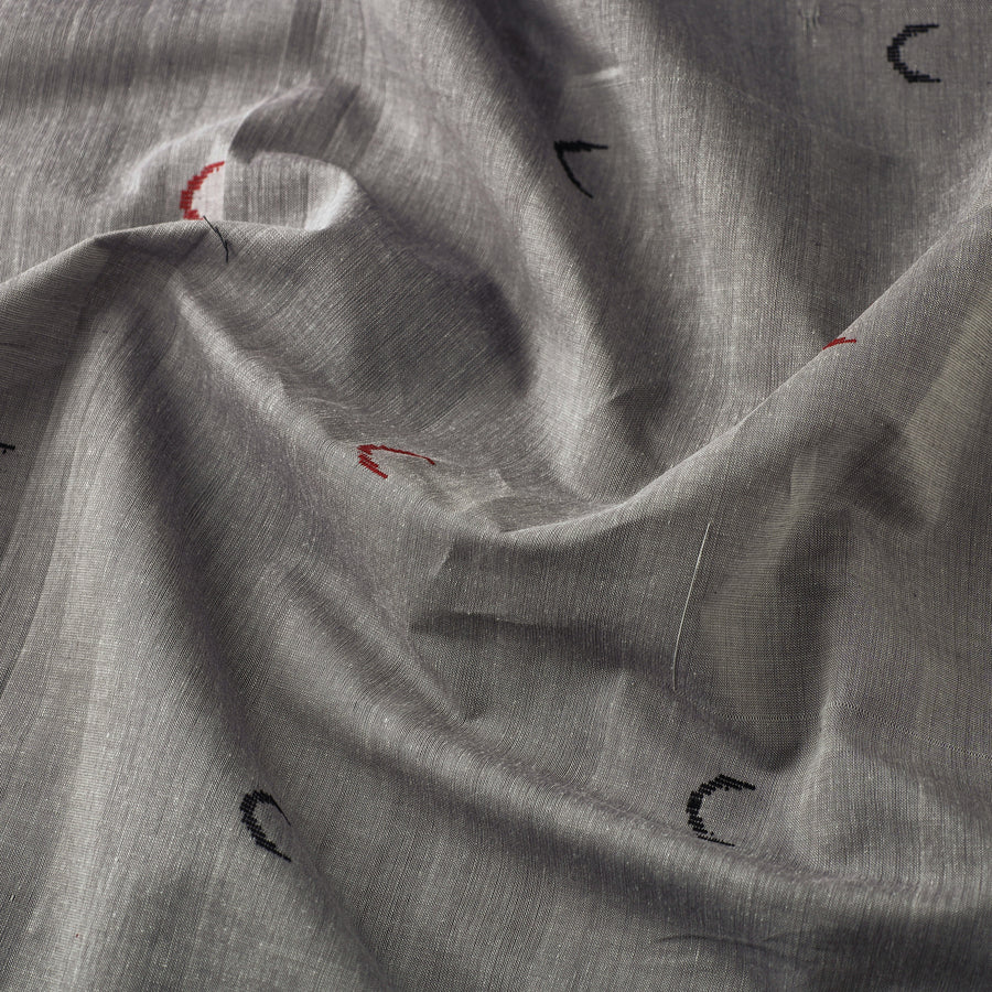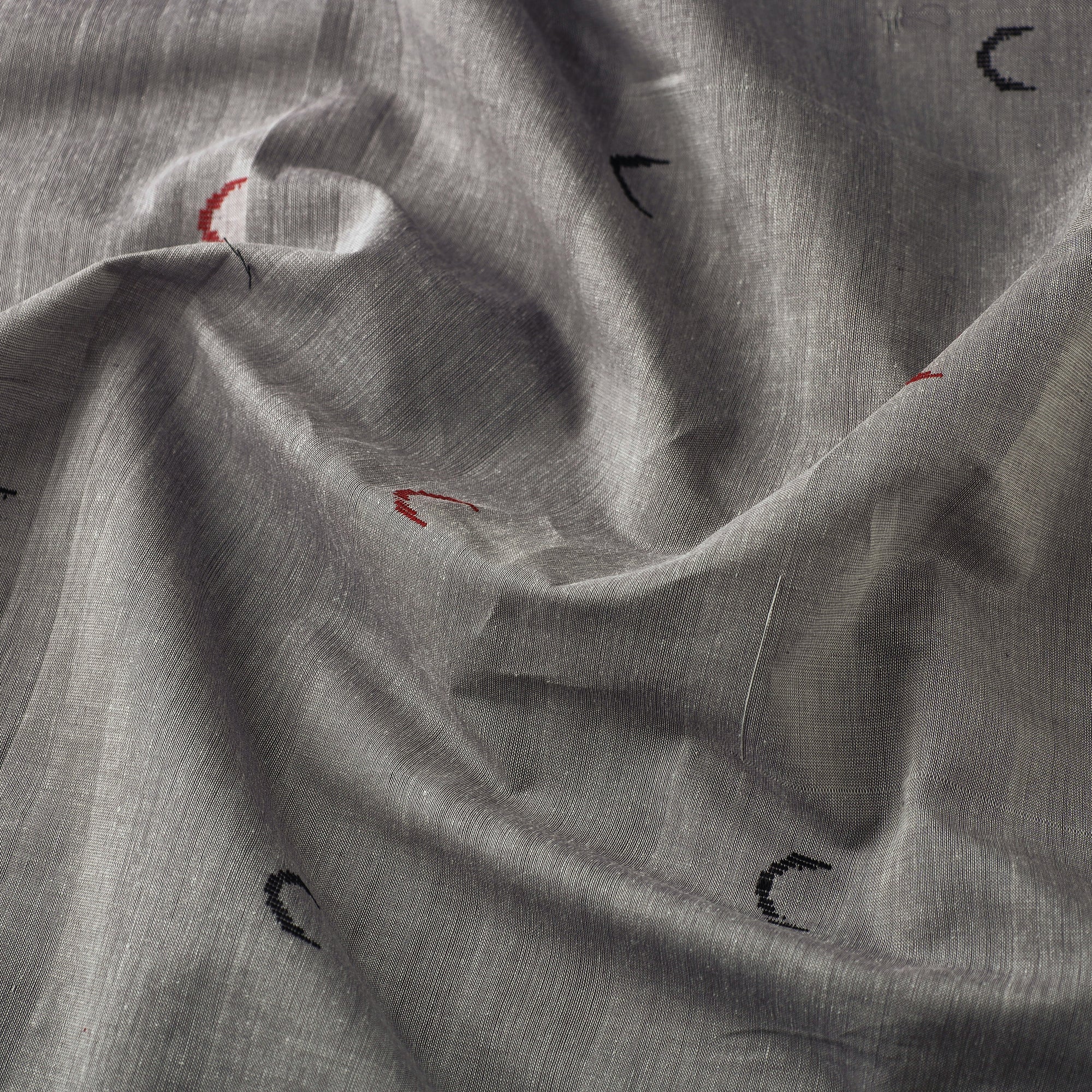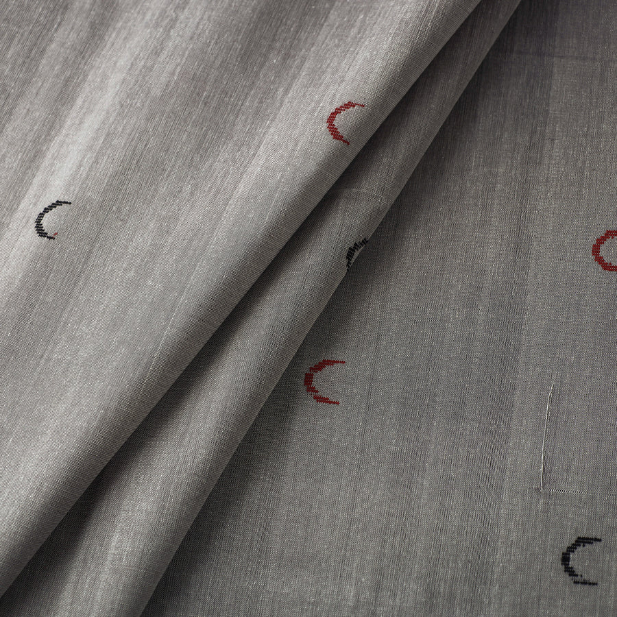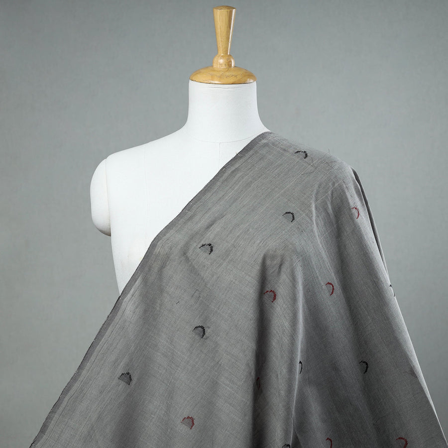 Fine quality srikakulam jamdani buti pure handloom cotton fabric from Andhra Pradesh. Azo free dyes have been used to make this fabric. The base fabric for Jamdani is unbleached cotton yarn and the design is woven using bleached cotton yarns so that a light-and-dark effect is created. The process is extremely time consuming as it involves a tedious form of hand looming. The making of Jamdani involves the supplementary weft technique along with the standard weft technique. With the latter, the base sheer material is made on which thicker threads on used to create designs.
