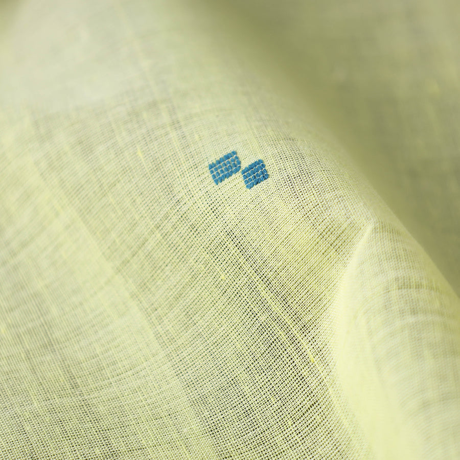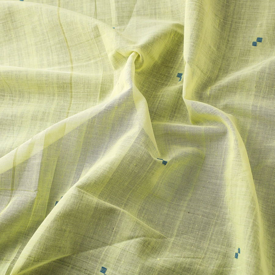 Fine quality srikakulam jamdani buti pure handloom cotton fabric from Andhra Pradesh. Azo free dyes have been used to make this fabric. The base fabric for Jamdani is unbleached cotton yarn and the design is woven using bleached cotton yarns so that a light-and-dark effect is created. The process is extremely time consuming as it involves a tedious form of hand looming. The making of Jamdani involves the supplementary weft technique along with the standard weft technique. With the latter, the base sheer material is made on which thicker threads on used to create designs.