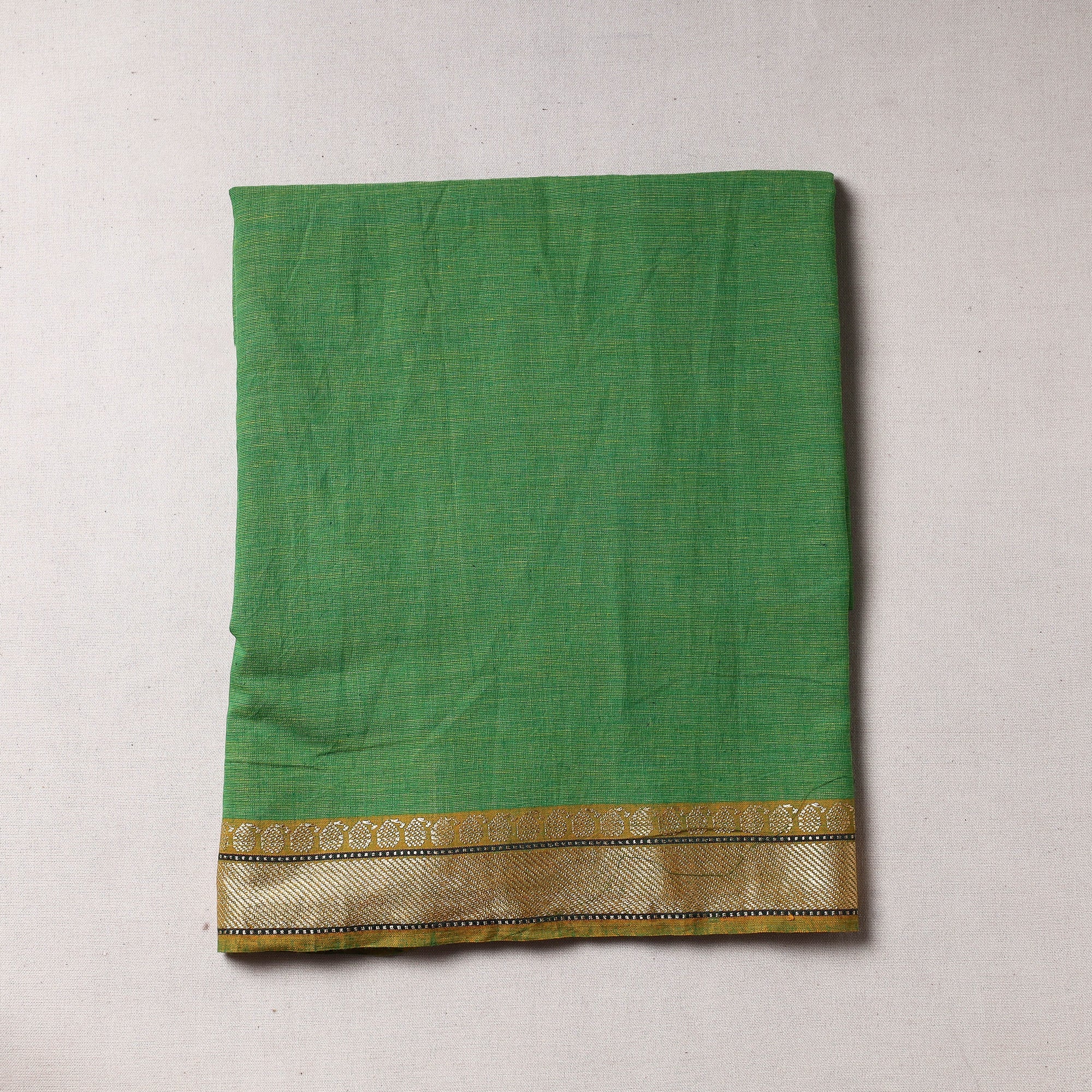 Green - Handloom Cotton Mangalagiri Fabric with Zari Border 14