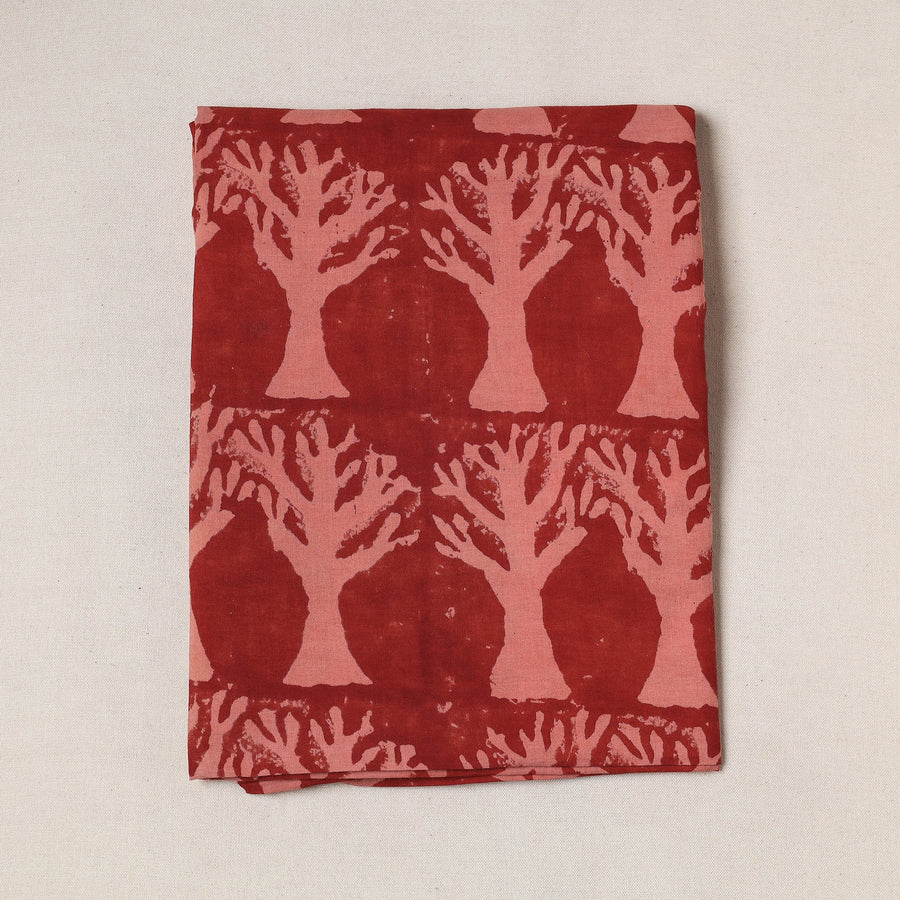 Fine quality red bindaas block art printed cotton natural dyed precut fabric. Crafted with passion and skill, this fabric showcases the essence of traditional hand printing processes, using natural dyes sourced from the bountiful landscapes of Kaladera, Rajasthan.