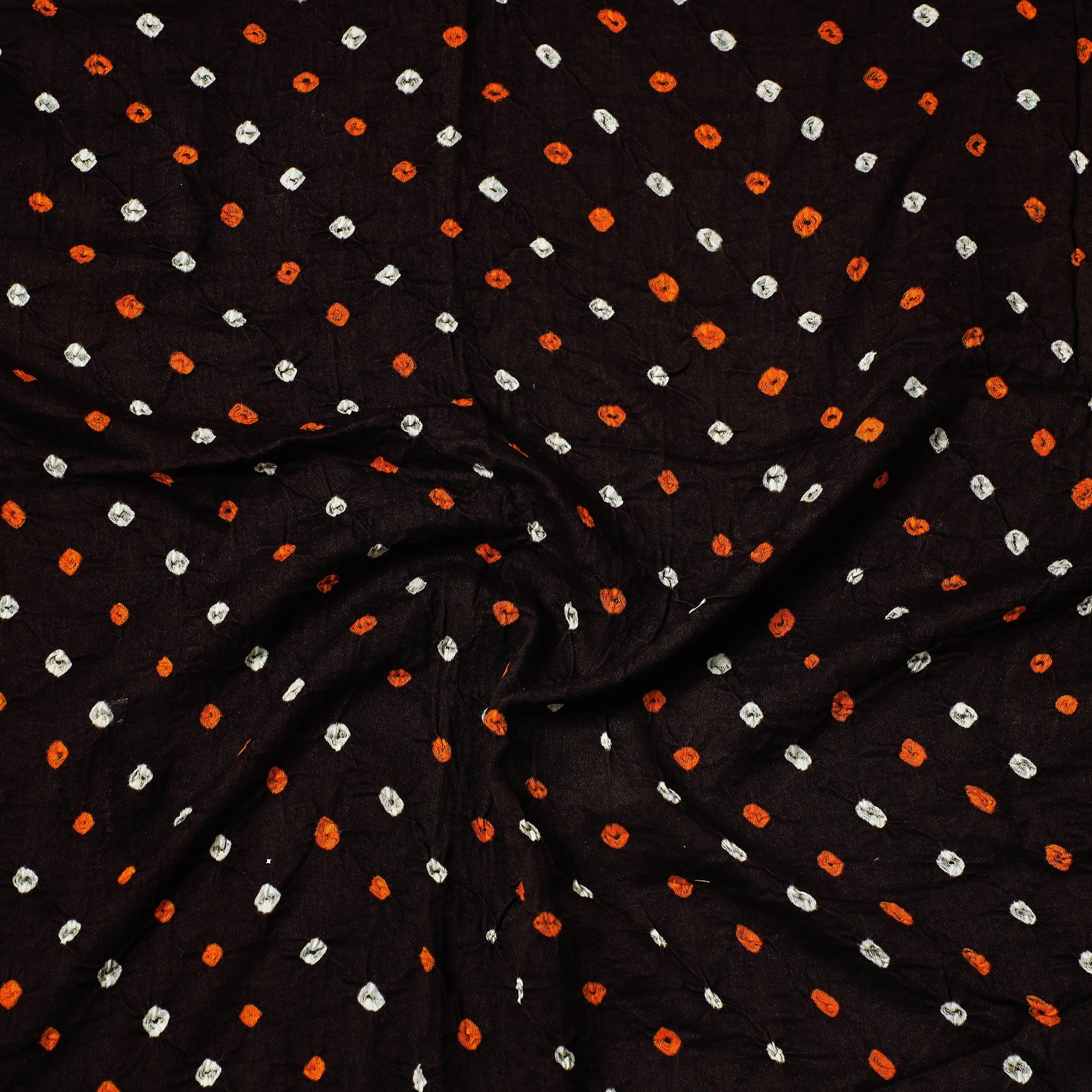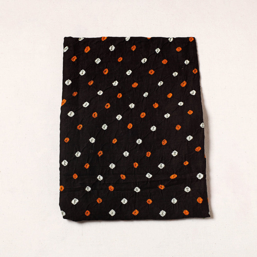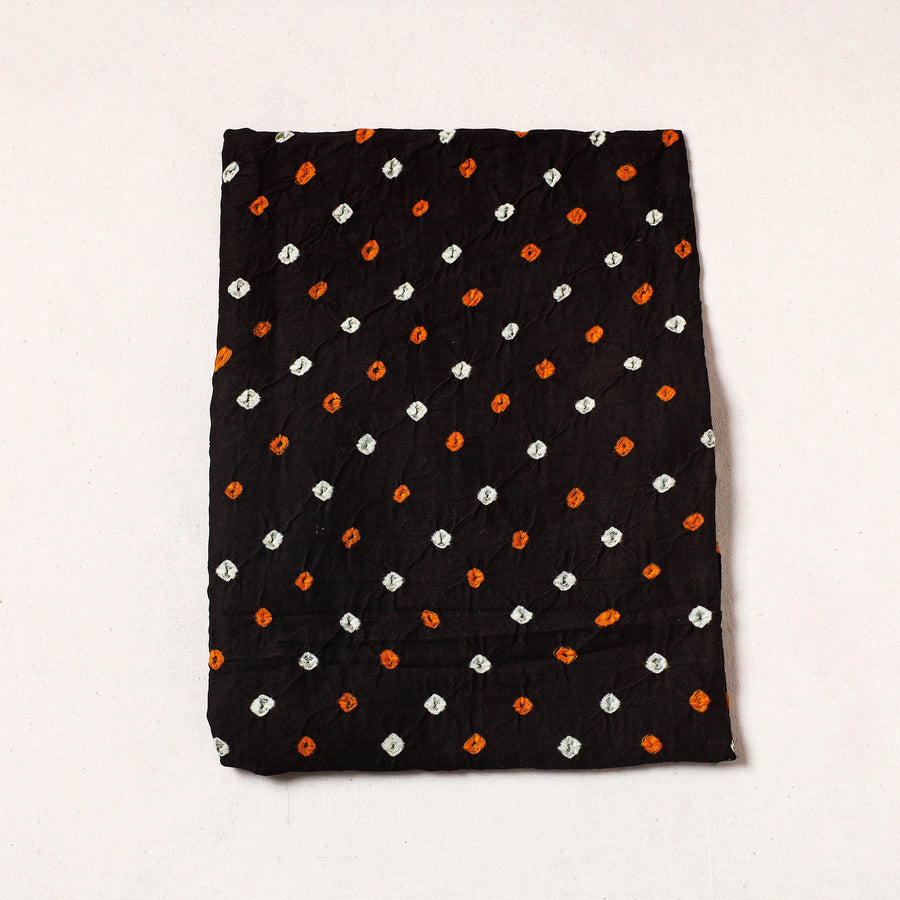 Fine quality black kutch bandhani tie-dye satin cotton precut fabric featuring majestic bandhani pattern, tie-dyed using the traditional technique practised by the artisans of Kutch. The art of Bandhani is highly skilled process. The technique involves dyeing a fabric which is tied tightly with a thread at several points.