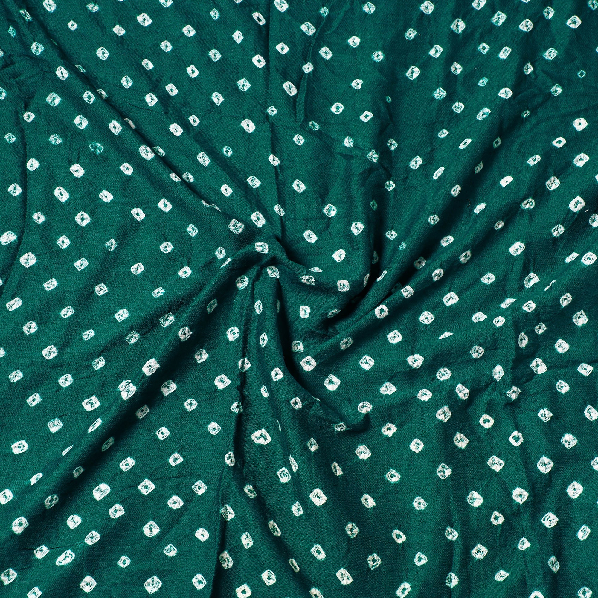 Fine quality green kutch bandhani tie-dye satin cotton precut fabric featuring majestic bandhani pattern, tie-dyed using the traditional technique practised by the artisans of Kutch. The art of Bandhani is highly skilled process. The technique involves dyeing a fabric which is tied tightly with a thread at several points.