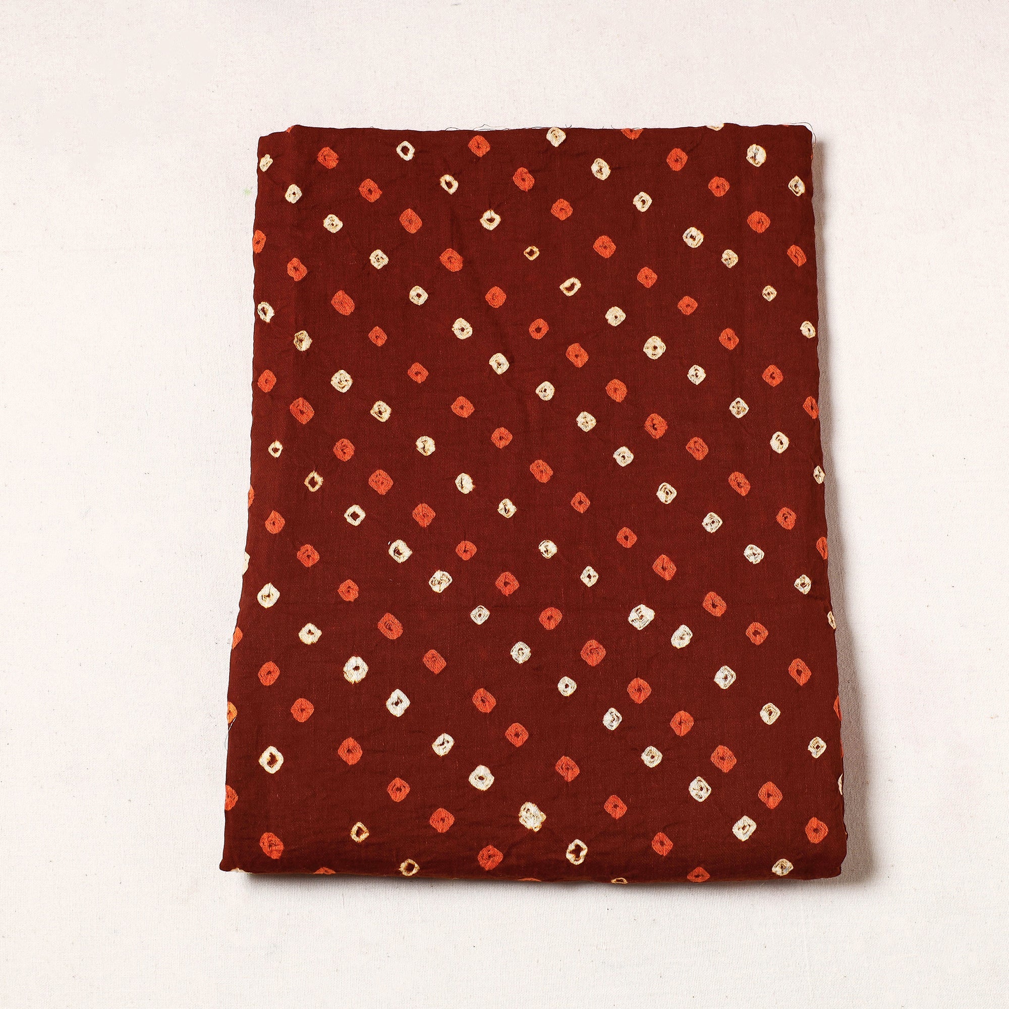 Fine quality brown kutch bandhani tie-dye satin cotton precut fabric featuring majestic bandhani pattern, tie-dyed using the traditional technique practised by the artisans of Kutch. The art of Bandhani is highly skilled process. The technique involves dyeing a fabric which is tied tightly with a thread at several points.