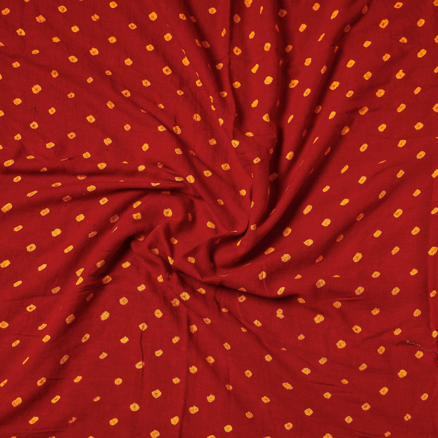Fine quality kutch bandhani tie-dye satin cotton precut fabric featuring majestic bandhani pattern, tie-dyed using the traditional technique practised by the artisans of Kutch. The art of Bandhani is highly skilled process. The technique involves dyeing a fabric which is tied tightly with a thread at several points.