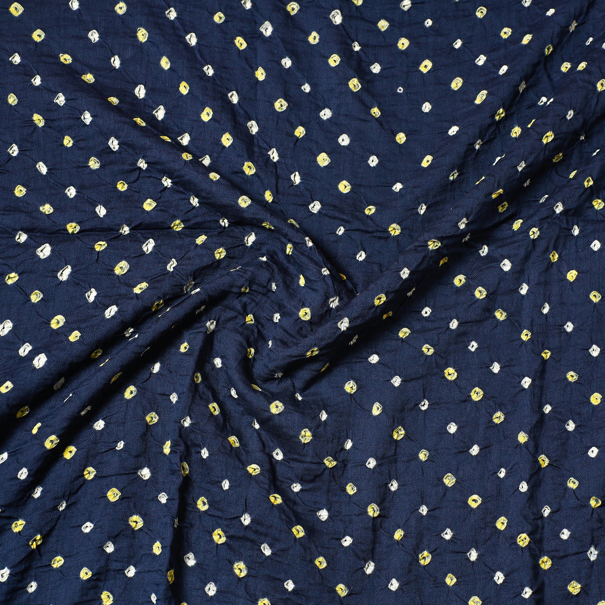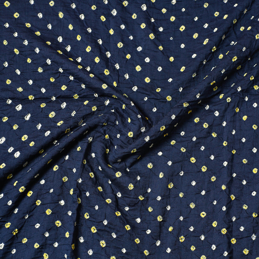 Fine quality blue kutch bandhani tie-dye satin cotton precut fabric featuring majestic bandhani pattern, tie-dyed using the traditional technique practised by the artisans of Kutch. The art of Bandhani is highly skilled process. The technique involves dyeing a fabric which is tied tightly with a thread at several points.