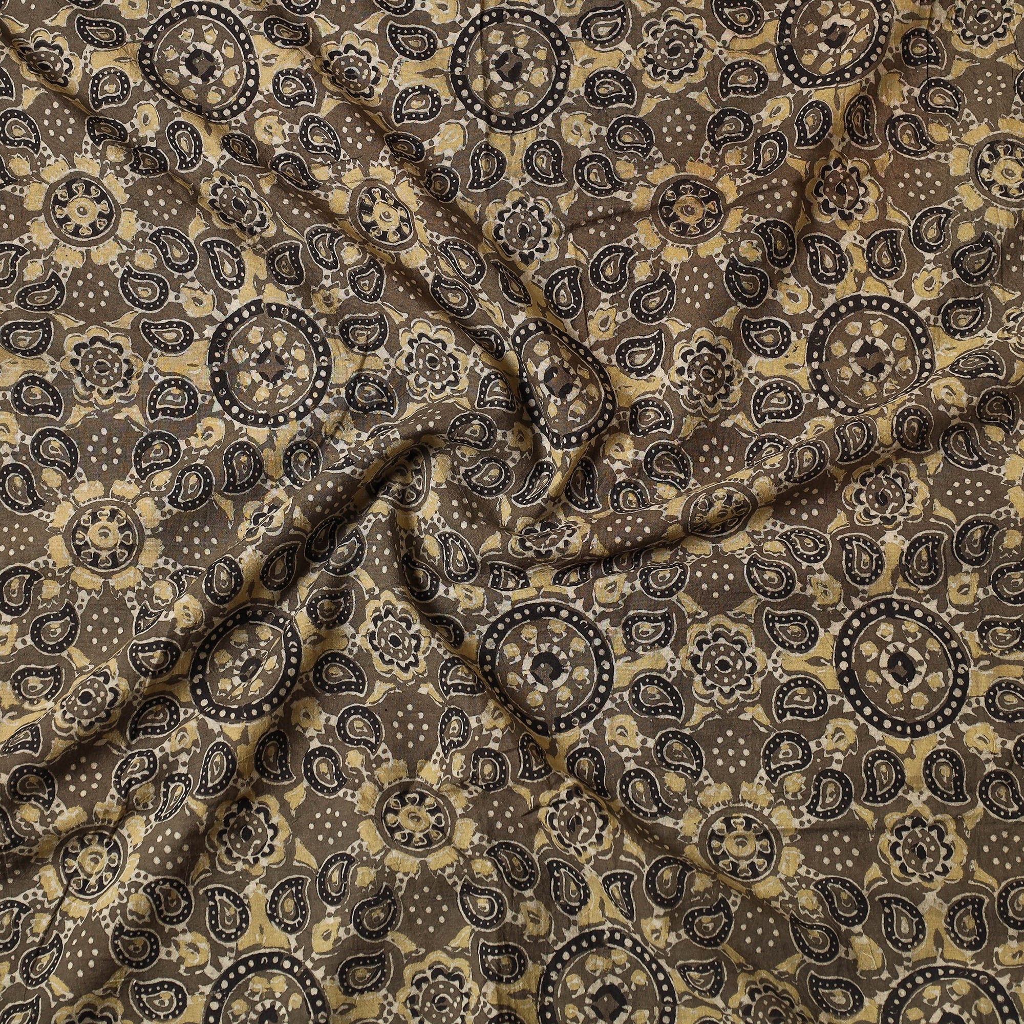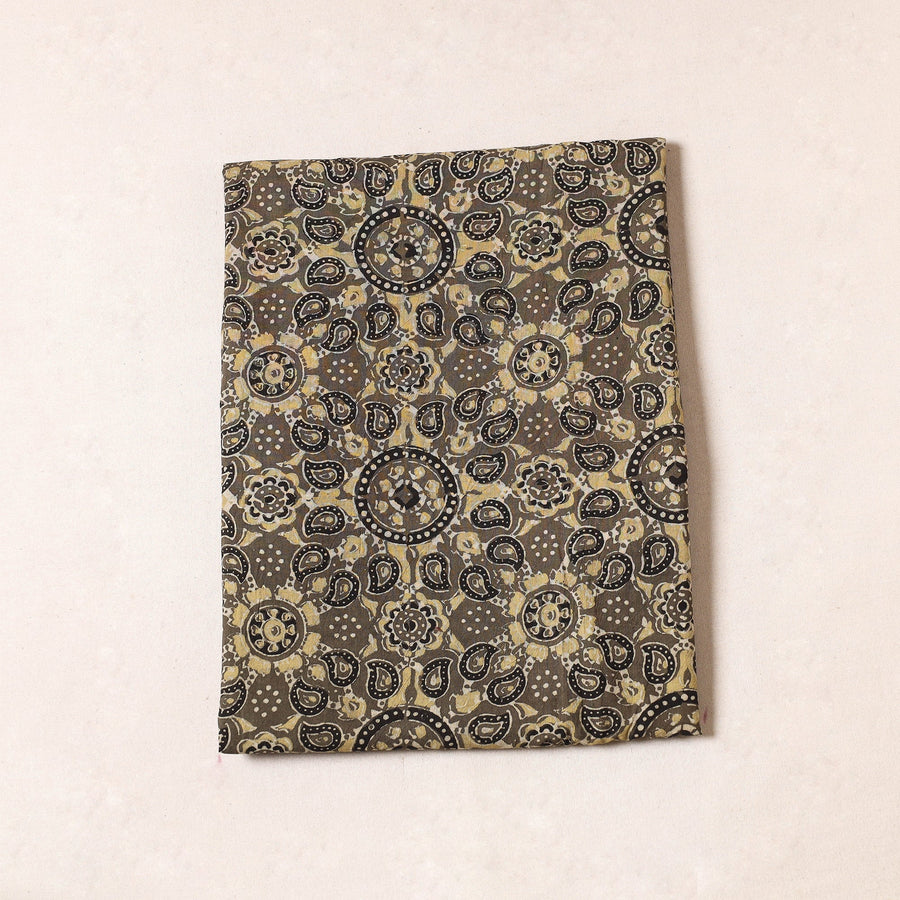 Fine quality brown ajrakh hand block printed cotton precut fabric made using natural dyes through traditional ajrakh technique of hand-block printing practised by the master artisans in Kutch region of Gujarat.