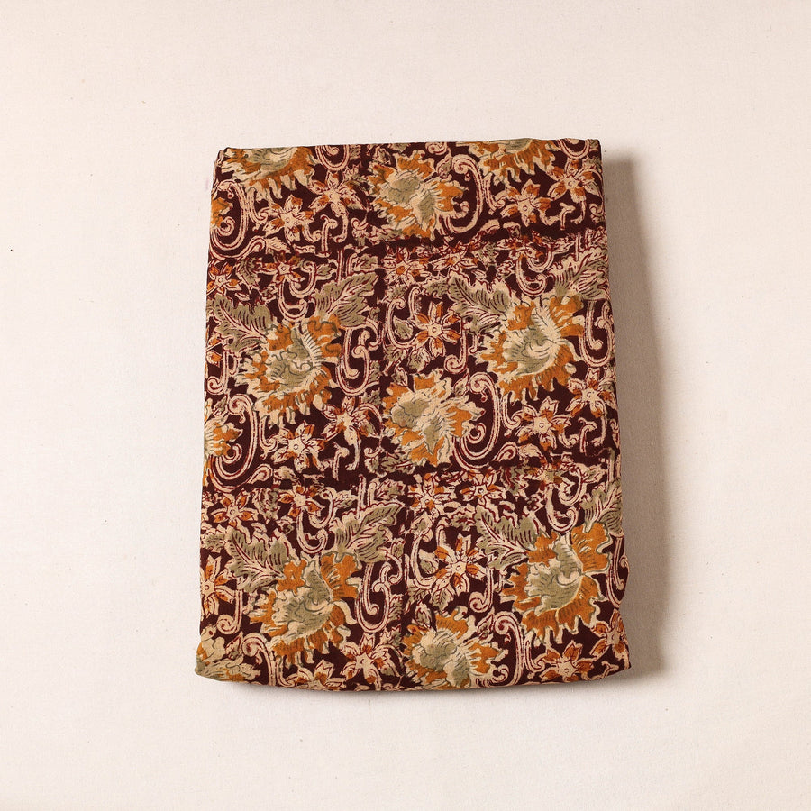 Fine quality red kalamkari hand block printed cotton precut fabric made using natural dyes through traditional process of hand block printing practised by the artisans of Andhra Pradesh. Kalamkari is the earliest and more complex techniques of block-printing. Showcasing an assortment of hand block printed motifs inspired by traditional kalamkari painting.